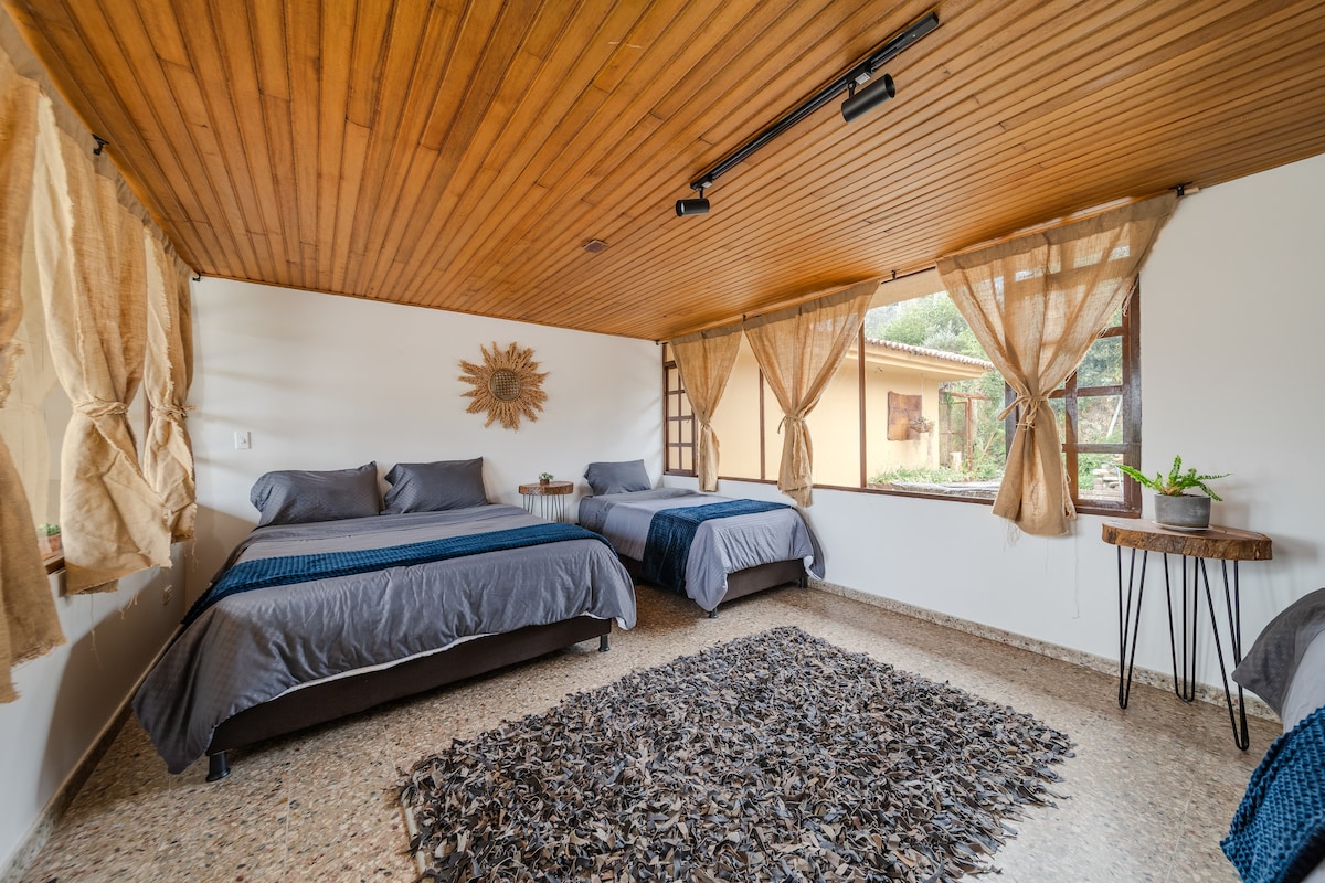 Þetta er EINI kofinn við STRÖND sveitalegs umhverfis STÖÐUVATNSINS og fyrsta flokks aðstöðu. Hann er með mjög stórt rými sem gerir kleift að komast í snertingu við náttúruna með því að hlusta og fylgjast með fuglunum. Kyrrðin gerir þér kleift að hugleiða, stunda jóga eða hreyfa þig, ef þú ferð með gæludýr mun það vera sá sem nýtur sín best, á kvöldin getur þú fengið þér ríkulegt vínglas við hliðina á varðeldinum. Ef þú verður eftir án þess að vita af því? Samgöngur fyrir útlendinga frá flugvellinum í Bogotá til villa conchita kosta aukalega