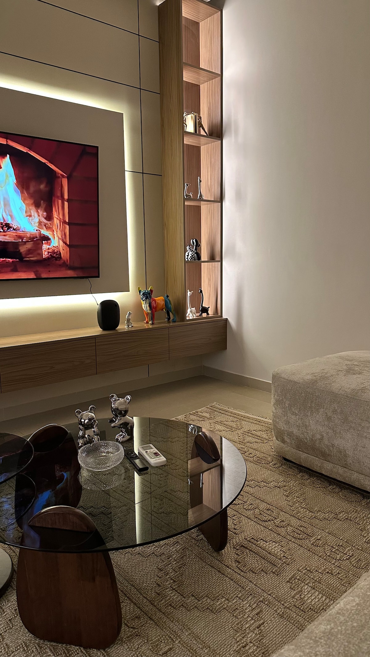 Lúxus og glæsileg íbúð með nýjum arkitektúr og forréttinda staðsetningu með rólegu kvöldi með öllum fallegu smáatriðunum til að verja fallegustu stundunum Það samanstendur af svefnherbergi, geymsluskápum og lofthreinsara með útsýni yfir lifandi götu, sérstakri setustofu með ókeypis netaðgangi og 65 tommu skjá með Samsung Sound Bar með virkri Netflix áskrift, úr, YouTube og ýmsum forritum Verið velkomin til gesta okkar.