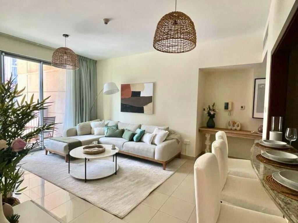 Verið velkomin í tveggja svefnherbergja húsnæði okkar í Seraya í Opera Residences þar sem þægindi heimilisins mæta 5 stjörnu gestrisni. Þessi glæsilega íbúð er staðsett í hjarta miðbæjar Dúbaí, beint á móti Dúbaí-óperunni, með yfirgripsmikið útsýni yfir Burj Khalifa og Dubai-gosbrunninn. Hún er hönnuð með sérsniðnum innréttingum og er með rúmgóða stofu, fullbúið eldhús og glugga sem ná frá gólfi til lofts sem sýna sjóndeildarhring Dúbaí. Fáguð gisting þar sem stíll, þægindi og staðsetning koma saman áreynslulaust.