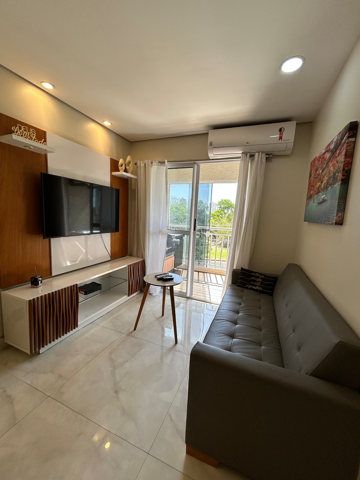 Moderno apartamento de 67m², ao lado da UNIP e a 3 min do hospital Unimed, perto de supermercados, farmácias e outros serviços. Com capacidade para até 6 hóspedes, o espaço é equipado com móveis novos, roupa de cama, toalhas, utensílios de cozinha e ar-condicionado na sala/cozinha e na suíte. O condomínio oferece piscina, mercadinho 24h e vaga de estacionamento. Portaria 24h garante segurança e praticidade para sua estadia, ideal para lazer ou trabalho.