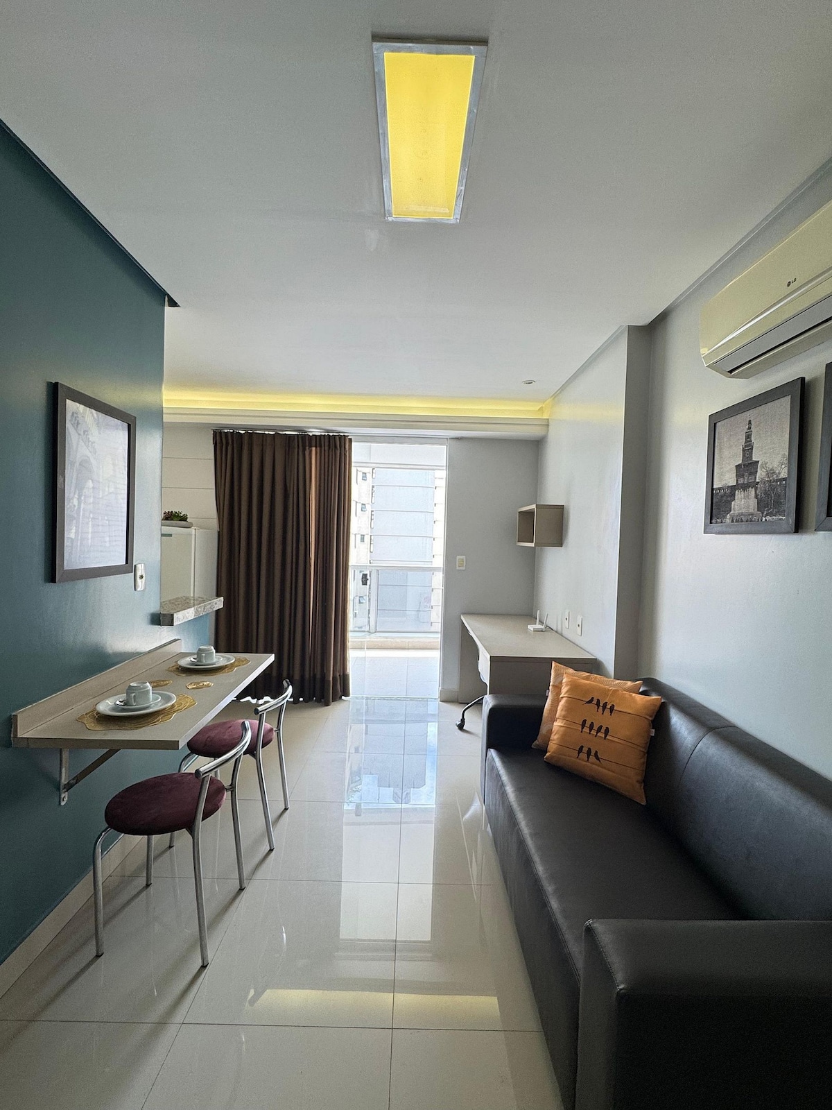 Sérstök eign, nálægt öllu New Flat, beautiful decor, with TV (Netflix), air conditioning, queen double bed, sofa bed, clean and soft bed and bath linen, washing/drying machine, refrigerator, water coolled purifier, cooktop, balcony with amazing view, 1 parking space. Byggingin er í háum gæðaflokki. Endalaus sundlaug, yfirgripsmikið og upphitað útsýni, nuddpottur, líkamsrækt og þaksápa - 40 hæð. Þemapláss, þvottahús, squash quadra, garður.