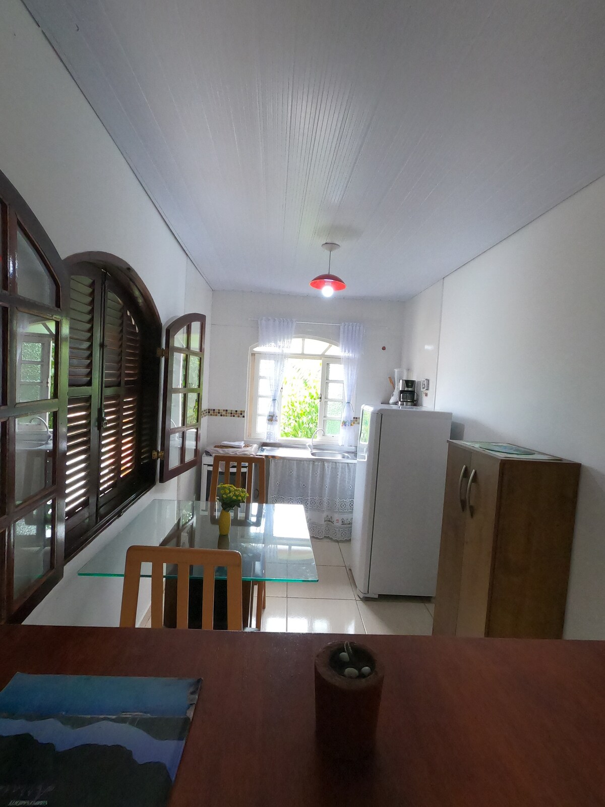 Heill stúdíó, með eldhúsi og baðherbergi, í litlu og heillandi þorpi í þægilegu umhverfi og fyllt með sameiginlegum svæðum með stofu, bakgarði og verönd. The Villa is well located, close to several beach and access to trails, in the small town of Arraial do Cabo, before a small fishing village, now known as the diving capital and very attractive for navical tourism and whale watching. ATHUGAÐU: Þetta stúdíó er með aðgengi með stiga á opnu svæði.