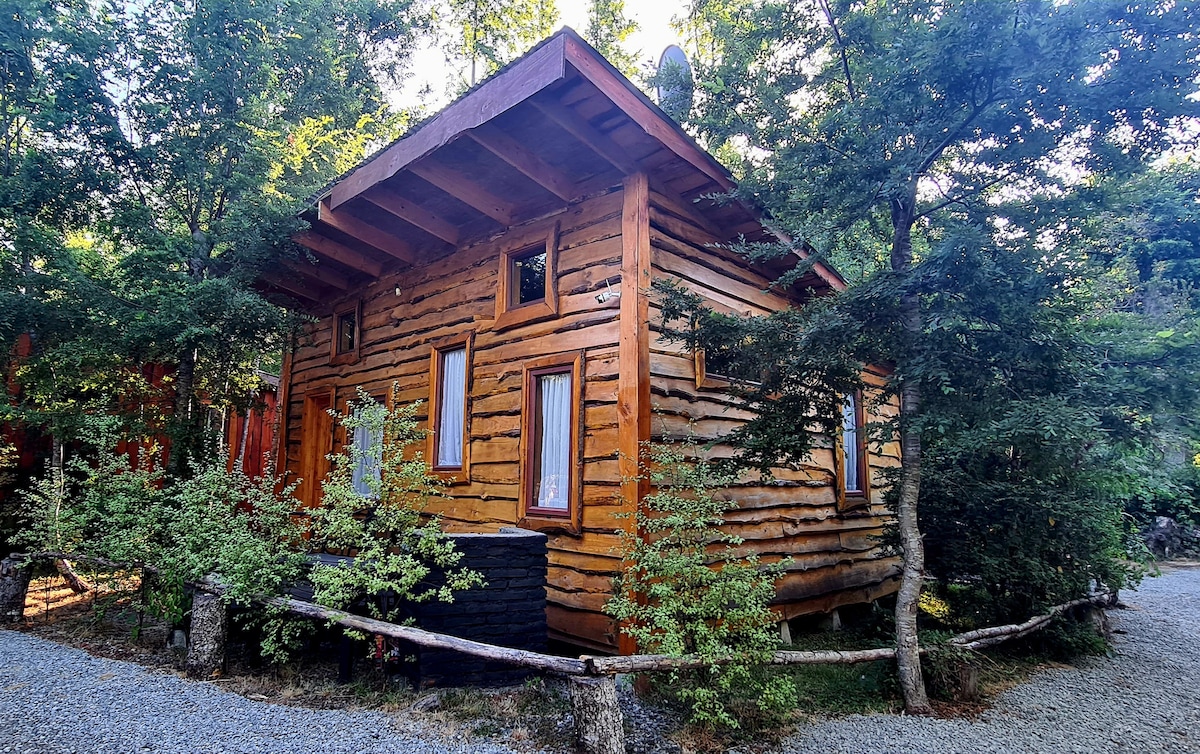 45 mínútur eða 32 km frá Pucón, sveitakofi í skóginum, hannað fyrir upplifun af aftengingu og einföldu lífi. Þögn, fuglasöngur, innfædd tré, sól og fjalla rigning, með frábæru þráðlausu neti. Við notum endurnýjanlega orku og vörur sem eru framleiddar með umhverfisværi hætti, án þess að bjóða upp á borgarlúxus. Hiti er með viðarbræðslu, með hefðbundnum suðurhluta. Fullkomið til að slaka á, tengjast náttúrunni og lifa í skóginum af virðingu; ekki ráðlagt fyrir þá sem leita að þægindum eins og í borg.