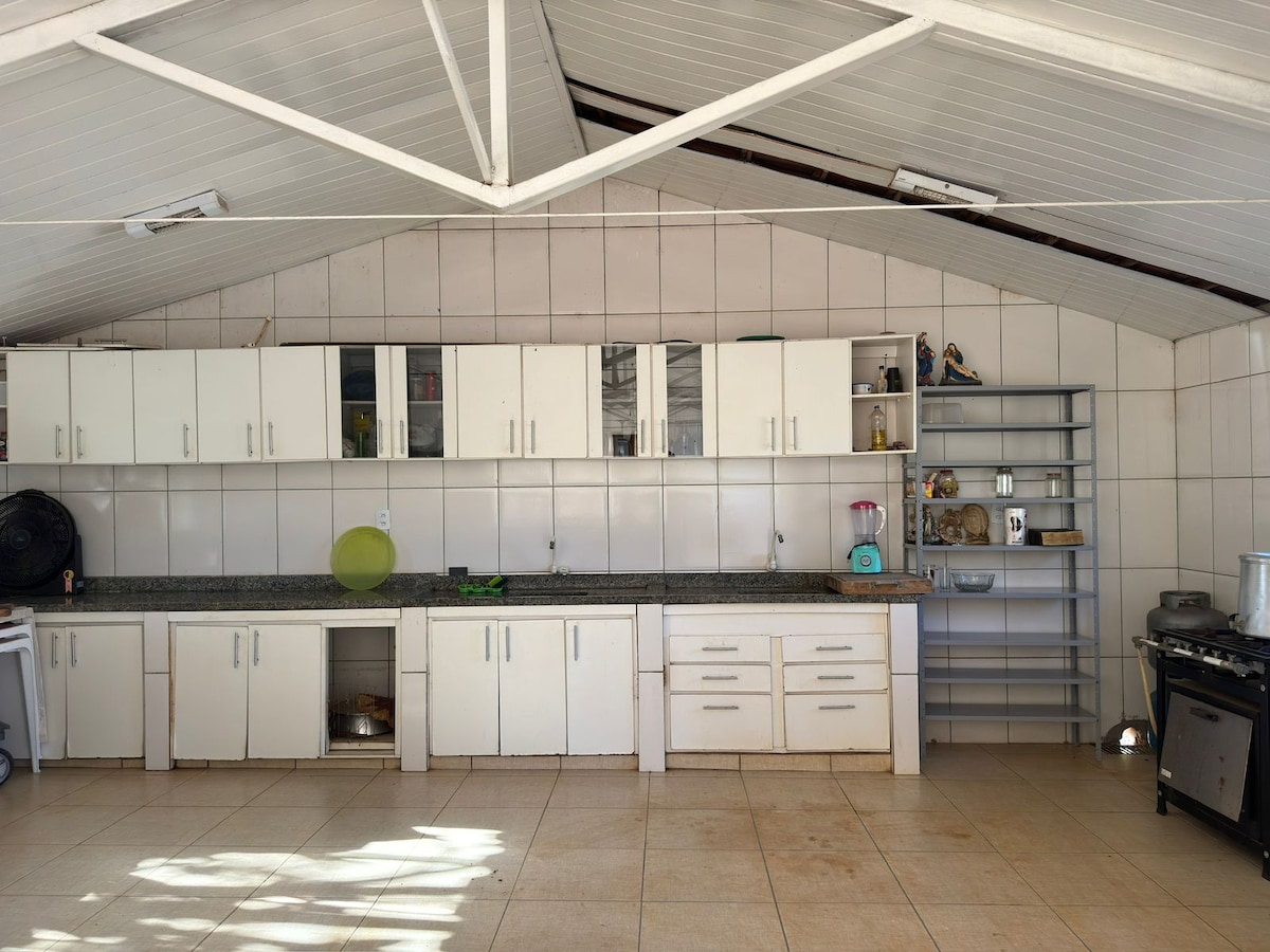 Hús með 2 svefnherbergjum(1 hjónarúm, 2 einbreið rúm með 2 aukarúmum fyrir neðan), stofu, vel búnu eldhúsi, 1 baðherbergi, bílskúr, þvottahúsi, með bestu staðsetninguna í Araxá Mg, við hliðina á líkamsræktarstöðinni Life style, við hliðina á bakaríum og mörkuðum.