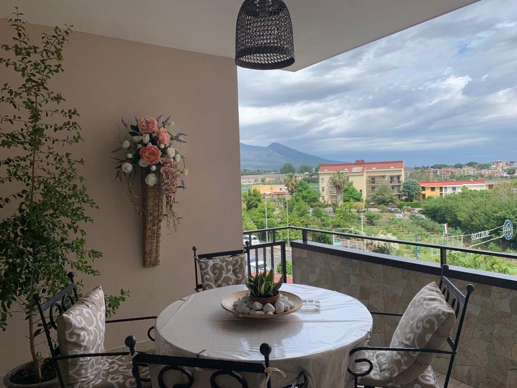 Very large and spacious apartment, large terrace with Vesuvius view, free parking, 3 bedrooms with 9 beds, well-equipped kitchen, free washing machine, high chair, free cot and changing table, 2 bathrooms, suitable and equipped for any type of family . It is a 20/30 minute walk from the centre, the ruins of Pompeii and the Basilica. Well connected to reach Sorrento, the Amalfi coast, Naples and more by car, taxi or train.