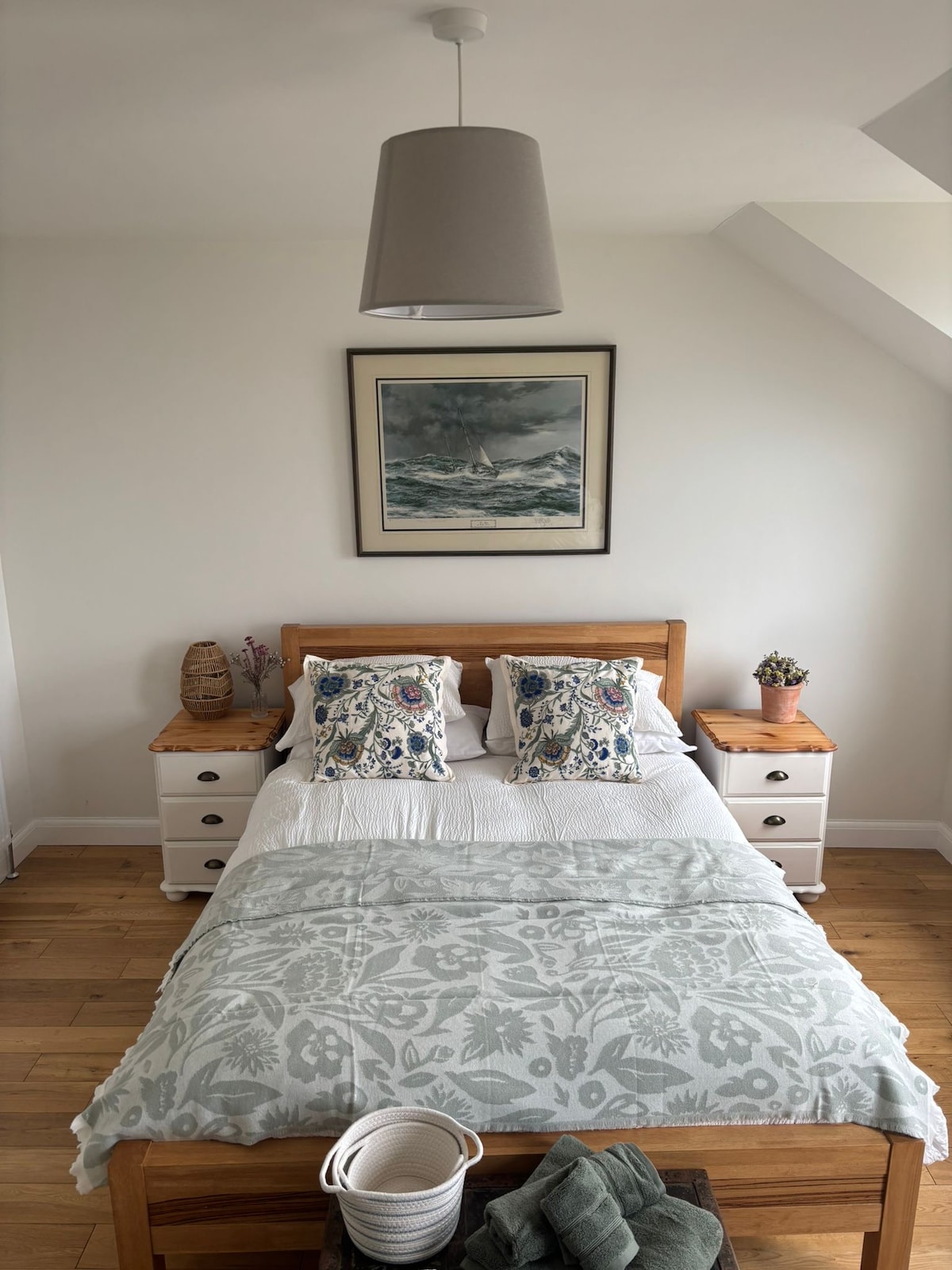 Bright, comfortable bedroom with private bathroom