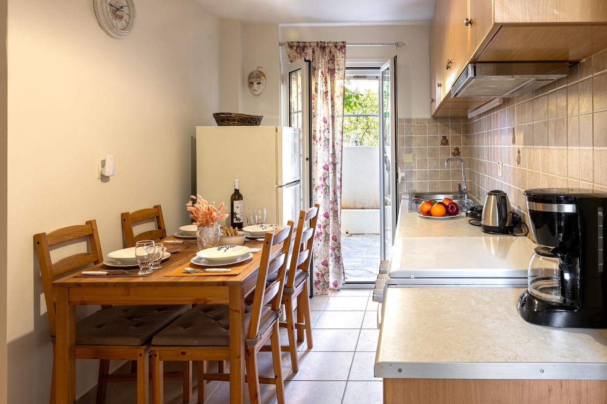 Í hjarta Argostoli, Aurora Apartments, er ný tillaga fyrir fríið þitt. Avgi er fyrsta íbúðin okkar sem var endurnýjuð að fullu árið 2024. Þetta er notaleg og rúmgóð tveggja herbergja íbúð sem er tilbúin til að taka á móti þér og fjölskyldu þinni fyrir frábæra orlofsupplifun. Argostoli er höfuðborg Kefalonia og við erum kjarninn í henni. Í rólegu íbúðahverfi, nálægt en samt nógu langt frá brjálæðinu í miðbænum og með aðgang að stórmarkaði og öðrum verslunum í göngufæri.