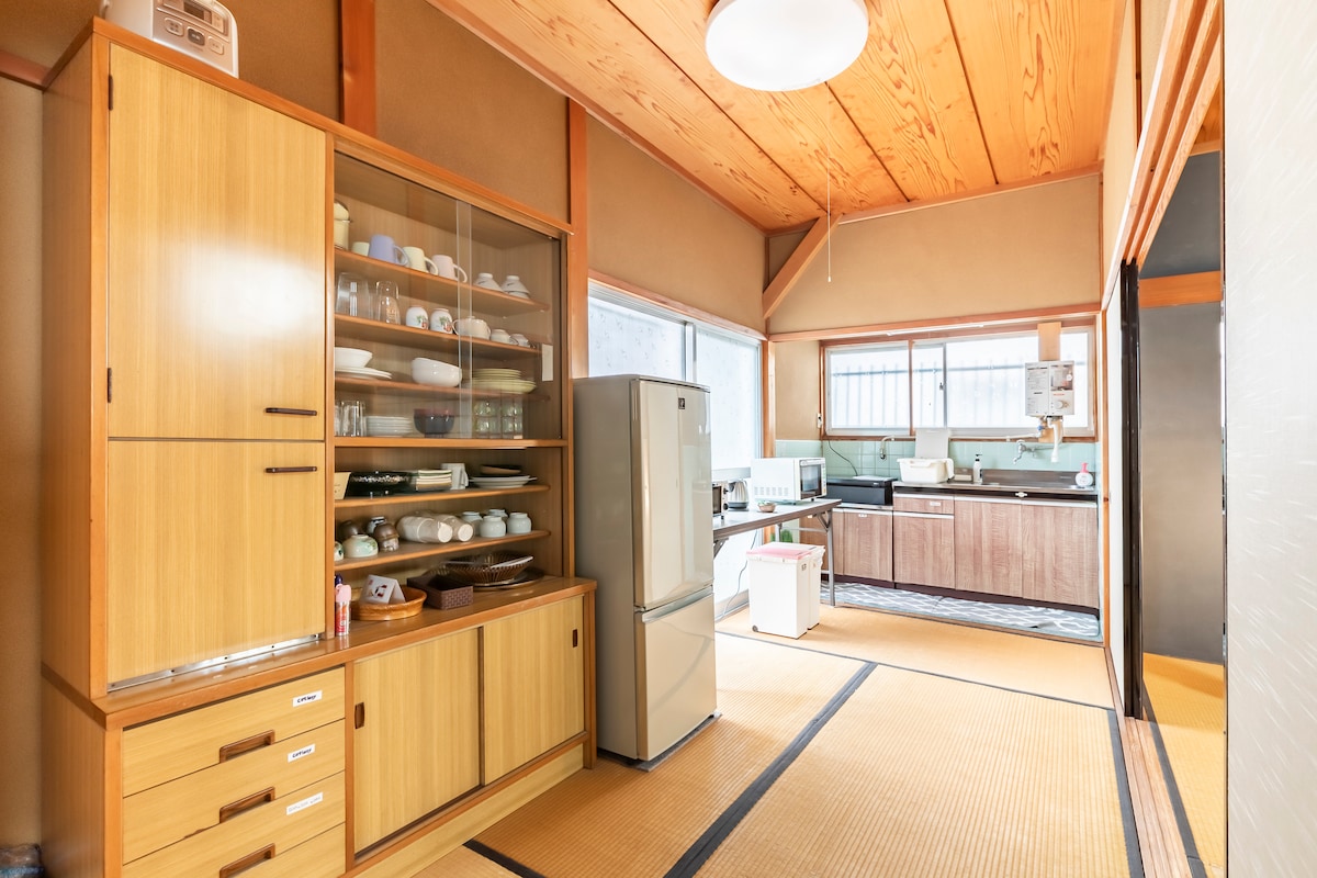 Guesthouse Agae er takmörkuð dvöl fyrir einn hóp sem hefur verið endurnýjaður úr gömlu einkahúsi.Staðsett á mjög þægilegum stað, í um 550 metra fjarlægð (um 7 mínútna göngufjarlægð) frá Kumano Kodo og Kinro-Oji og í 1 mínútna göngufjarlægð frá matvöruverslun (A-COOP), strætisvagnastoppistöð (Kodo Aruki no Sato Chikatsuyu) og veitingastað (Tororoya). Eigandinn er leiðsögumaður í Kumano Kodo á staðnum og því munum við gera okkar besta til að svara spurningum, ráðum og sækja og skutla þegar þú þarft á því að halda.Við getum einnig útvegað persónulegar leiðbeiningar og því er þér velkomið að ráðfæra þig við okkur. Máltíðir eru ekki innifaldar í verðinu.Í næsta húsi eru matvöruverslanir og veitingastaðir. ☆ A-coop Kinan/Kumano Kodo Chikatsu-yu verslun Matvöruverslun „A-coop“ 8:30 – 18:00 ☆ Veitingastaðurinn „Tororoya“ Veitingastaðurinn „Toroya“ 11:00 – 18:30 (Síðasta pöntun kl. 18:00) Lokað á þriðjudögum. Við getum einnig skipulagt máltíðir og því biðjum við þig um að lesa „Annað til að hafa í huga“. „Agae“ þýðir „húsið mitt“ á mállýsku staðarins.Vinsamlegast slakaðu á eins og þú værir heima hjá þér. Heimilisfang: 1776-3, Nakabeji-cho, Tanabe-shi, Wakayama-hérað 646-1402