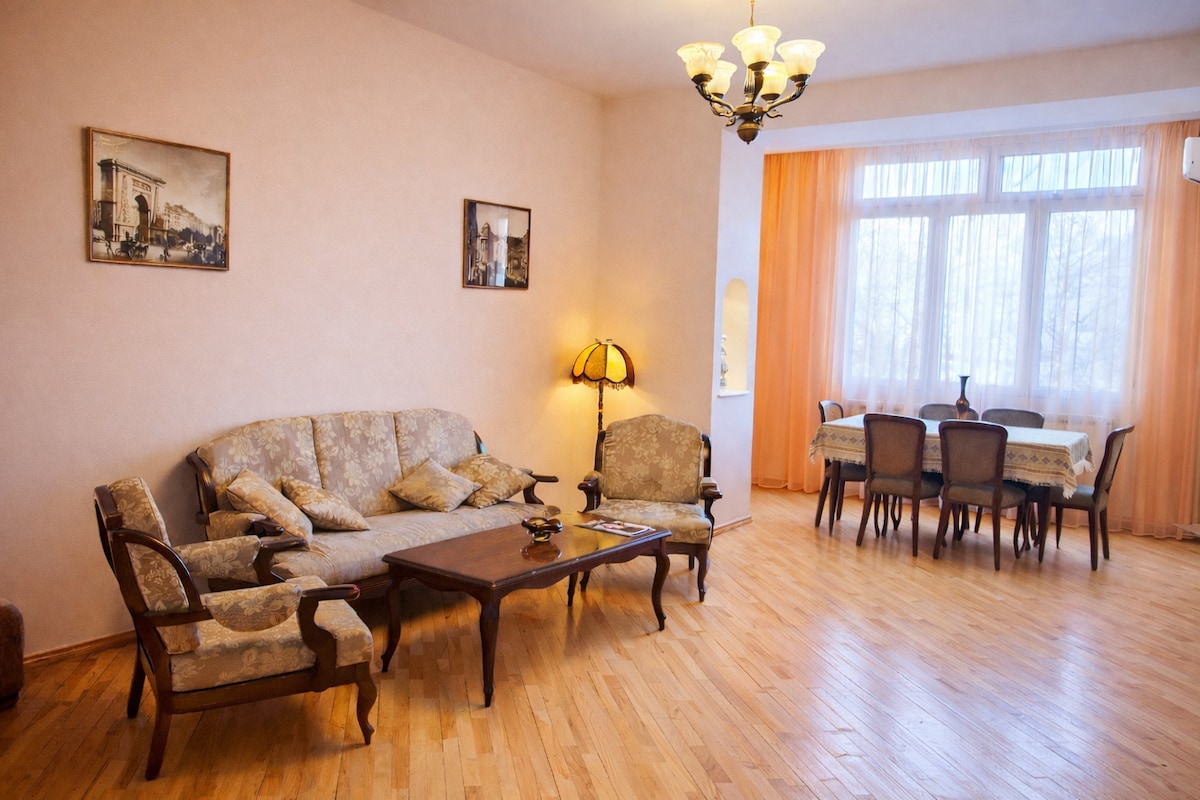 Íbúðin er staðsett í miðborg Jerevan. Fimm mínútna göngufæri frá Republic Square, neðanjarðarlest, kaffihúsum og veitingastöðum. Nærri Vernissage og söfn. Í tíu mínútna göngufæri er Norðurleiðin, Cascade, Saryan gata (vínstræti) Íbúðin er fullbúin með öllu sem þarf