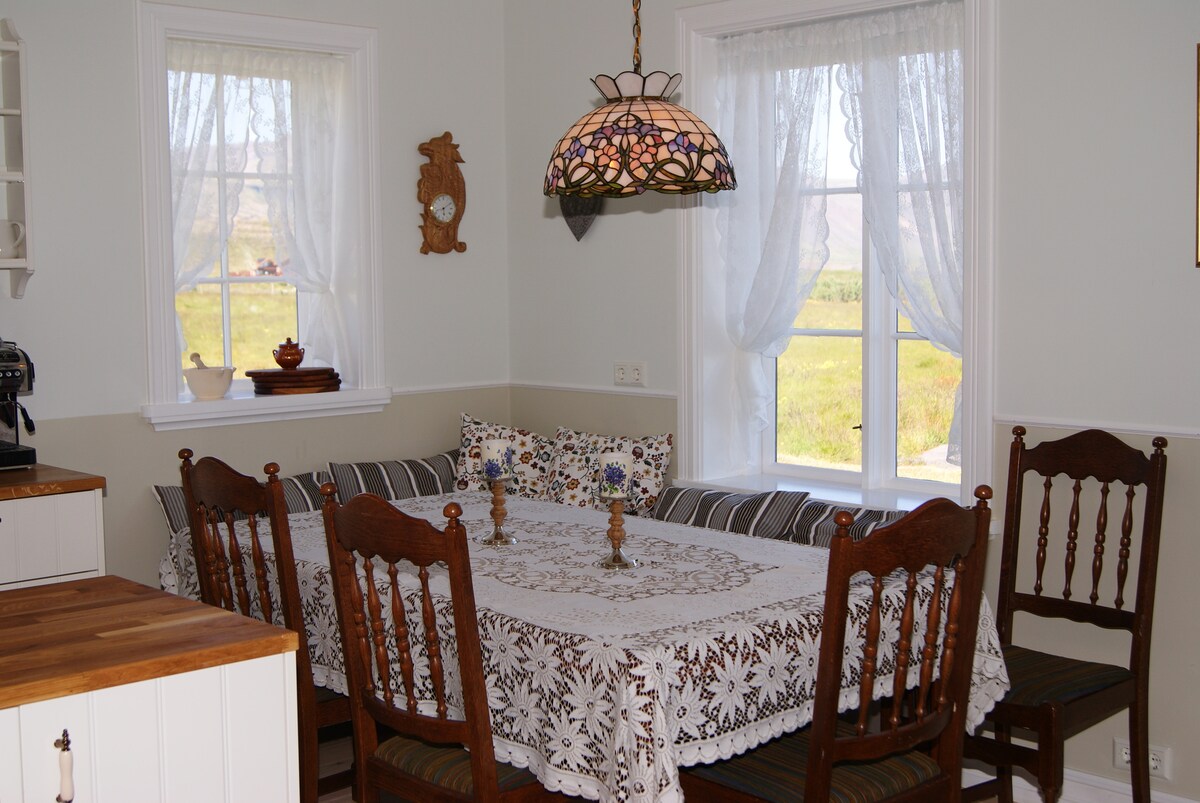 A cozy and atmospheric family country house designed and built by the owners with dedication and love, with additional help from their children and friends. Arnarstapi, is a small fishing village with a beautiful dock where local fishermen keep their boats. The house is situated only a short walk from the scenic cliff side near a beautiful national park with the majestic glacier Snæfellsjökull.