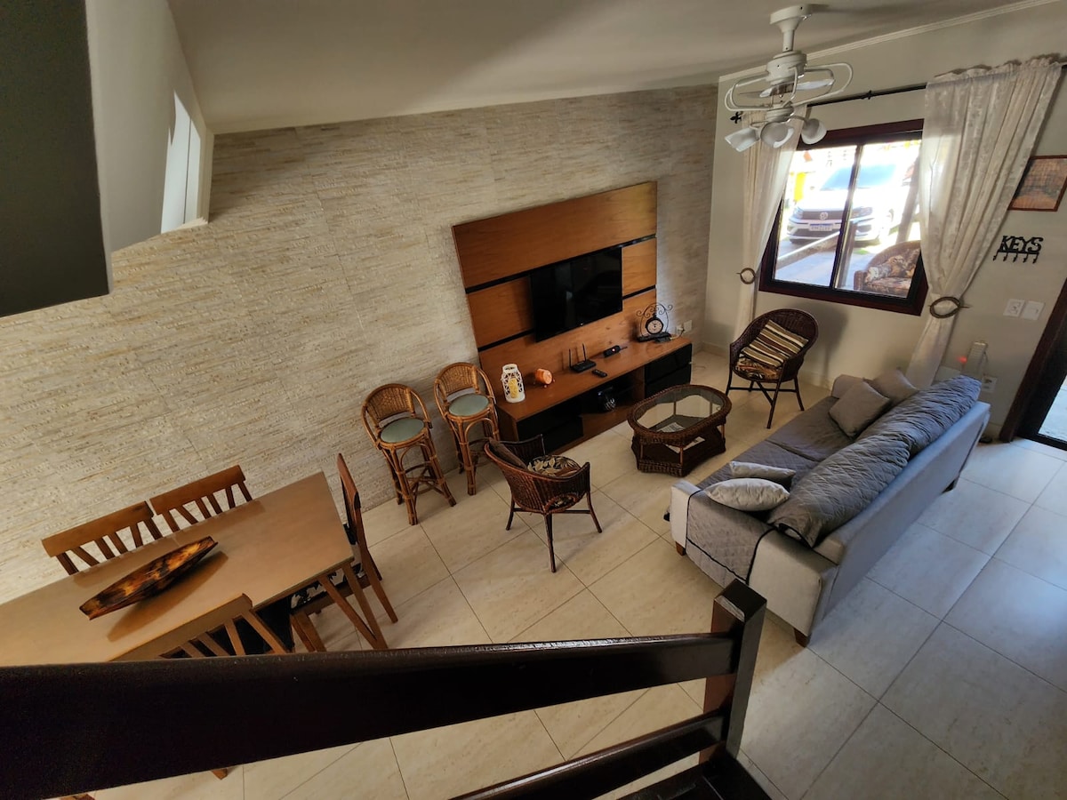 Í þessu raðhúsi er allt sem fjölskylda þarf til að skemmta sér vel í einni af fallegustu borgum Brasilíu. Húsið er barnasönnun og er staðsett í íbúð með bílastæði, sundlaug, gufubaði og grillstað. Cabo Frio og nærliggjandi bæir bjóða upp á fallegustu strendur landsins og þetta hús er staðsett á milli Arraial do Cabo -best stranda og náttúrulegrar afþreyingar- og Buzios- paradís fyrir matgæðinga, kaupendur og þá sem kunna að meta listir og vistfræði. Þar er einnig líflegt næturlíf.