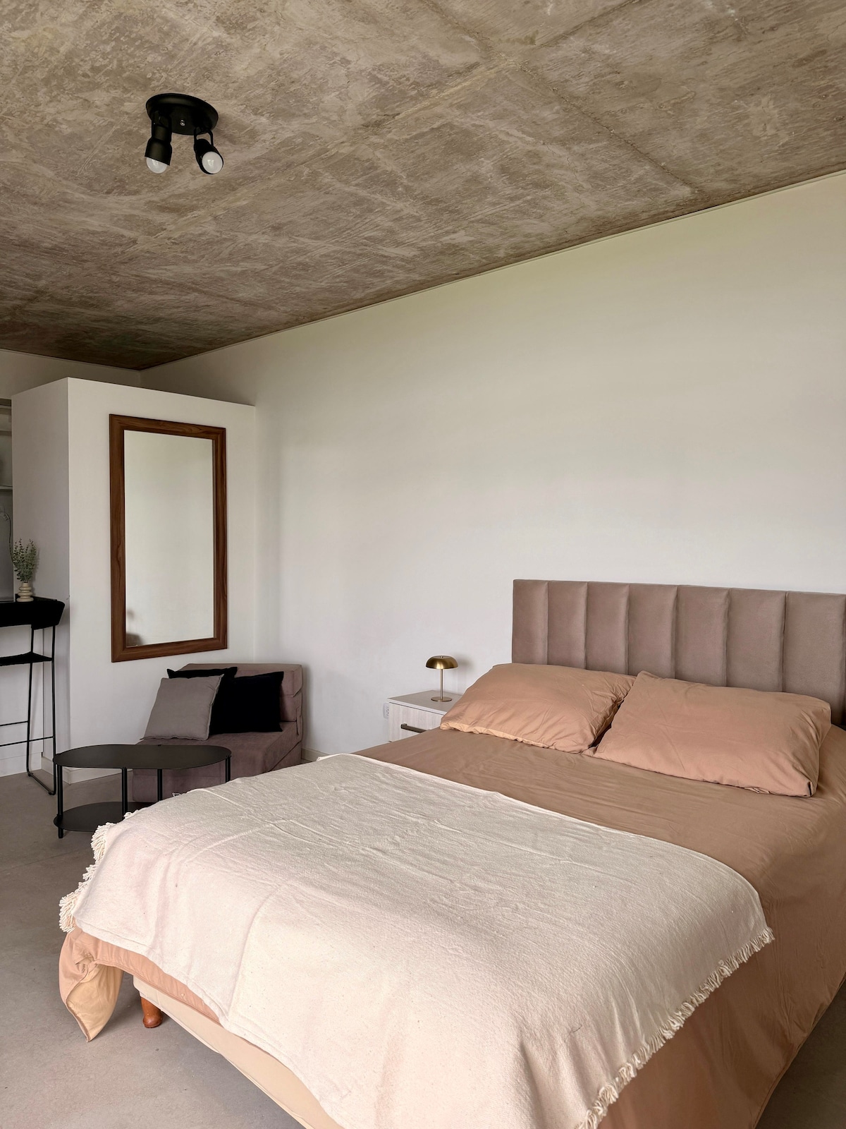 Loft de lujo en pleno Pichincha, reconocida por sus bares pintorescos y casonas de patrimonio historico. Cuenta con una cama matrimonial king size y 2 camas individuales, con opcion de colchon en el suelo. Cocina, aire central frío / calor. Cochera disponible a 40 mtos ( 12 USD la noche ). - Cambio de sabanas y toallas cada 7 dias ( si es más de 1 mes tiene costo extra) A 300 metros de La sala de las artes ( recitales) y a 800 m del Salón metropolitano ( fiestas electrónicas y recitales)