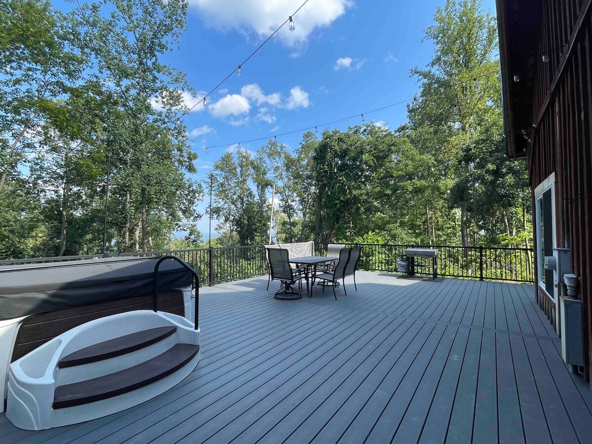 IG @montevistawv Luxury Getaway Professional Designed for STR 🏔️Massive Panoramic 3 State View Aksturssvið fyrir 🏌️♂️golfbolta 🏀 Pickleball, körfubolti, blak og tennis 🎮 PlayStation 5 Mini Disc ♨️ 6 manna heitur pottur 🔊Sonos-hljóð í gegnum tíðina 🔋Level 2 EV Charger 🥾 Gönguleið á staðnum 🌳 33 einkahektarar, enginn kyrrðartími 🔥 Massive Firepit + Grill & Pizza Oven 🛋️ Notalegur gasarinn 🌐 Hratt þráðlaust net og þrjú 65" snjallsjónvarp 🛏️ 3 King Beds & Twin Bunk Bed 💼 Sérstakt vinnusvæði