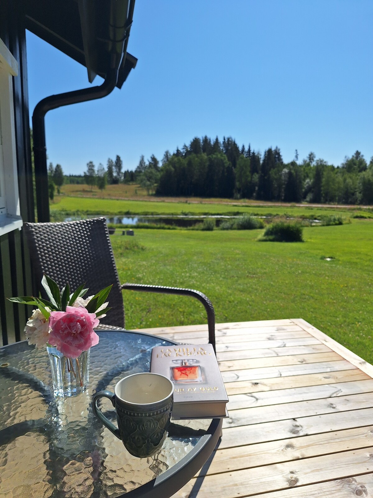 Velkomin í sveitina Lyckänga og Värmland. Við leigjum út litla bústaðinn okkar sem er staðsettur á lóðinni við hliðina á íbúðarhúsinu okkar. Fallegur staður umkringdur skógi og með útsýni yfir stórar engjar, beitilönd og glitrandi stöðuvatn. Lillstugan býður upp á nútímaleg gistirými í hvetjandi umhverfi. Gakktu, hjólaðu, grillaðu og njóttu sólarinnar á veröndinni, farðu á róðrarbátnum, fiskinum, gufubaðinu (35 evrur) og njóttu útisturtu. Hér eru mörg tækifæri fyrir dásamlegar stundir!