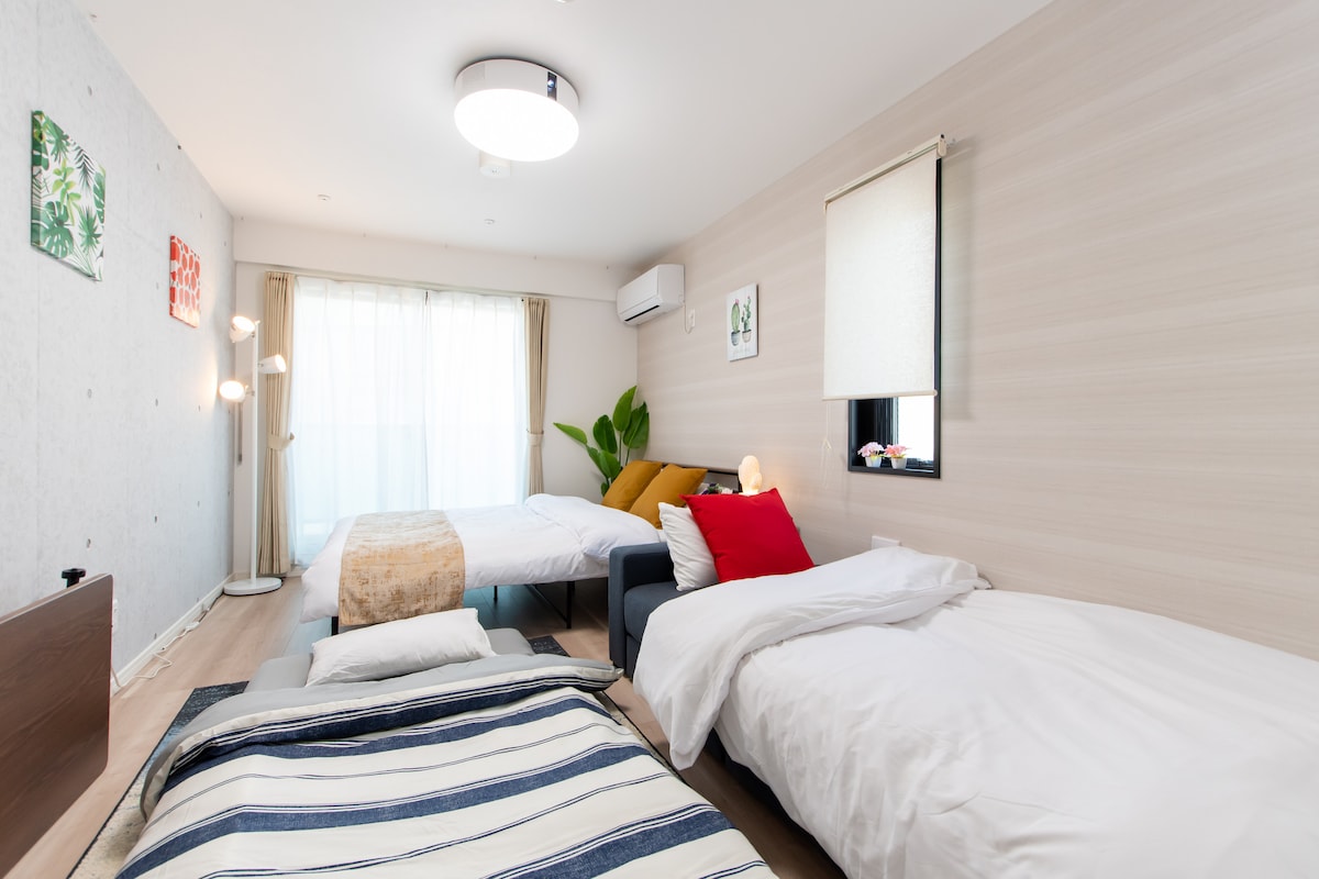 Frábær staðsetning: 16 mínútna göngufjarlægð (3 mínútur með lest) frá Tokyo Skytree, 5 mínútur með lest frá Asakusa. Herbergi 101: Rúmgóð og nútímaleg 2LDK fyrir allt að 7 gesti, tilvalin fyrir fjölskyldur og hópa. Ókeypis þráðlaust net, loftræsting, þægileg rúm, Netflix í boði. Næsta stöð: Hikifune (5 mín. ganga), Keisei-Hikifune (10 mín.). Glæný íbúð á öruggu og rólegu svæði með veitingastöðum og verslunum í nágrenninu. Herbergi 201 (1LDK, hámark 3 manns) er einnig í boði. Matvöruverslun í 1 mín. göngufjarlægð.