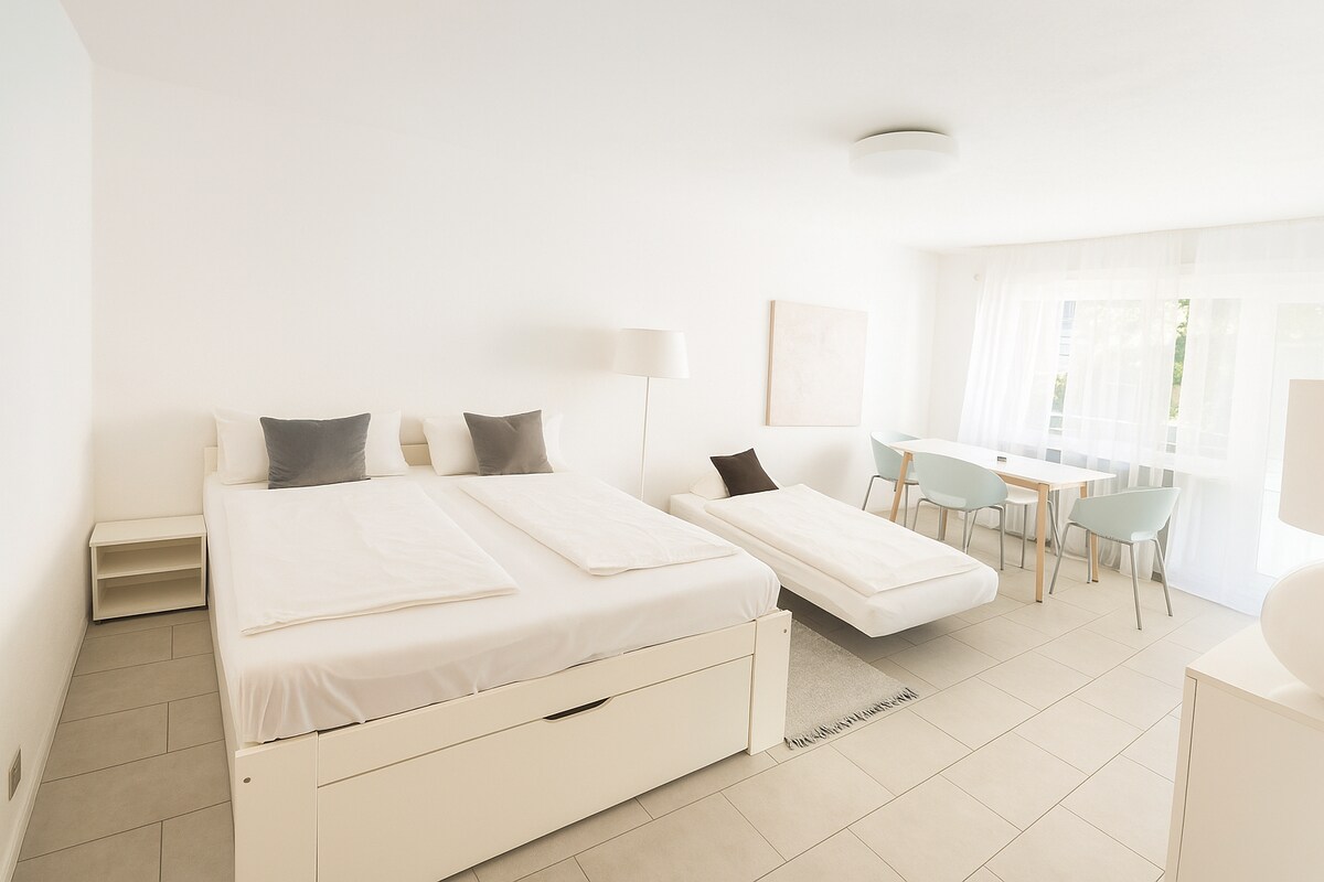 Welcome to your home away from home, the perfect getaway just outside Munich! This brand-new, fully equipped apartment offers a stylish and peaceful retreat with stunning park views from the balcony and excellent transport links—just 10 minutes to the train station and 5 minutes to the bus stop, taking you directly to Munich city center and Messe. ✨ Perfect for business & leisure travelers (also with pets) seeking comfort, style, and easy access to Munich.