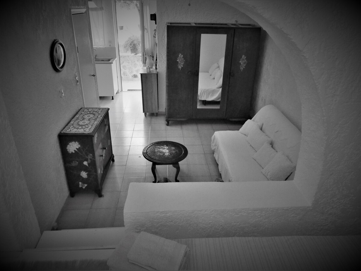 Pínulítið stúdíó á jarðhæð, með öllum nauðsynjum og gömlum húsgögnum ömmu... Hentar fyrir einhleypa ferðamenn og pör. Með sameiginlegum garði, stórum ólífutrjám og hengirúmum sem snúa að dalnum.