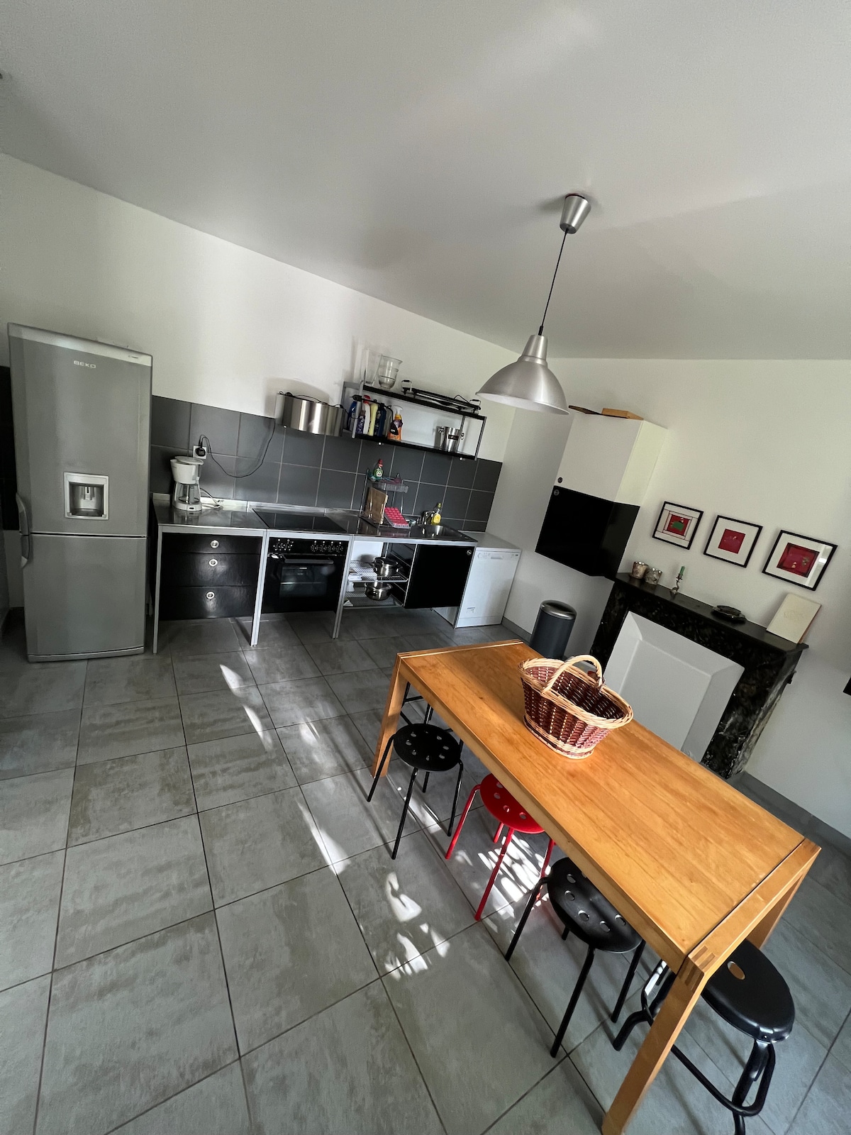 Íbúðin okkar er staðsett í 10 mínútna fjarlægð frá Reims og samanstendur af stórri stofu, þar á meðal fullbúnu eldhúsi, borðstofu, stofu með svefnsófa, sjónvarpi (flatskjá) og þráðlausu neti. Eitt svefnherbergi með 160 x 200 rúmum og baðherbergi með aðskildu salerni. Að auki nýtur þú góðs af öruggum bílastæðum (ökutæki og hjóli) inni í eigninni okkar. Af hreinlætisástæðum og ofnæmi eru engin gæludýr leyfð í þessari eign.