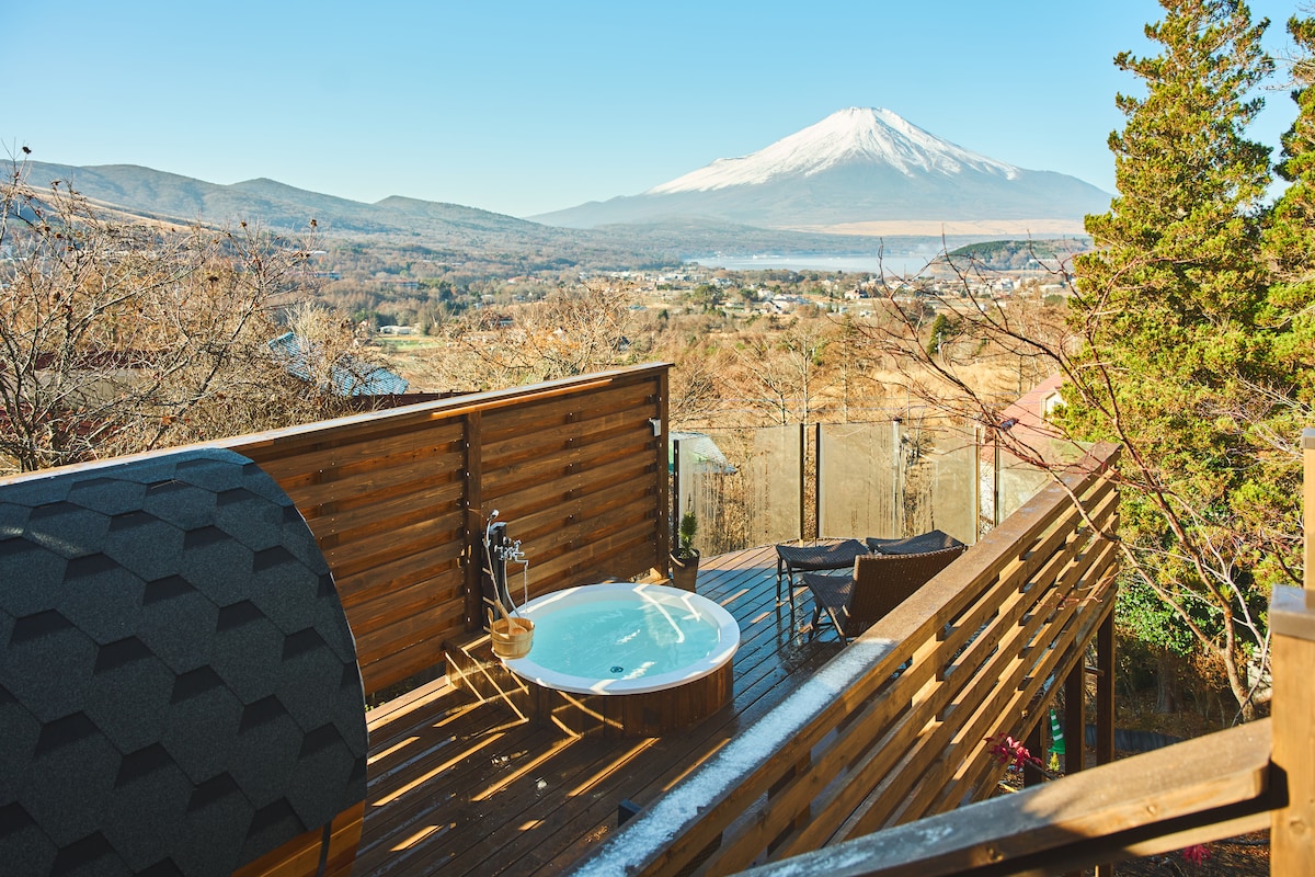 富士山と山中湖を見下ろす絶景テラスでBBQ・サウナも楽しめる静かな貸切プライベートヴィラ!