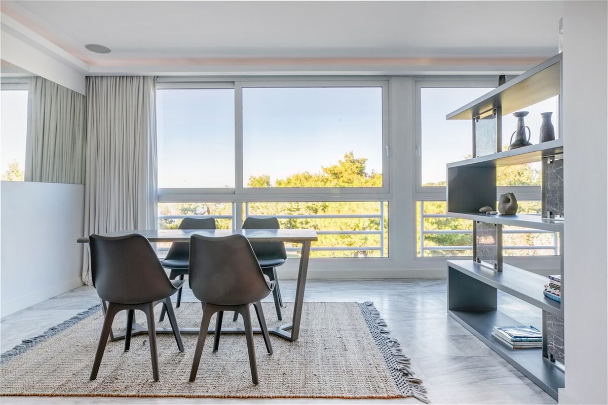 LÚXUS! ÚTSÝNI TIL ALLRA ÁTTA VIÐ STRÖNDINA! Staðsett í miðbæ Vouliagmeni, í göngufæri frá strönd (100m), skipulagðri strönd með aðstöðu (150m) og fræga vatninu Vouliagmeni (250m), veitingastöðum, börum, kaffihúsum, bakaríi og staðbundnum markaði. Njóttu frábærs útsýnis frá opinni setustofu, svefnherbergi og sturtu! Glæný, endurnýjuð íbúð, rúmgóð, fullbúið hús með 1 svefnherbergi, í einu öruggasta og fallegasta hverfi Athens Riviera. Íbúð á 1. hæð með lyftu.