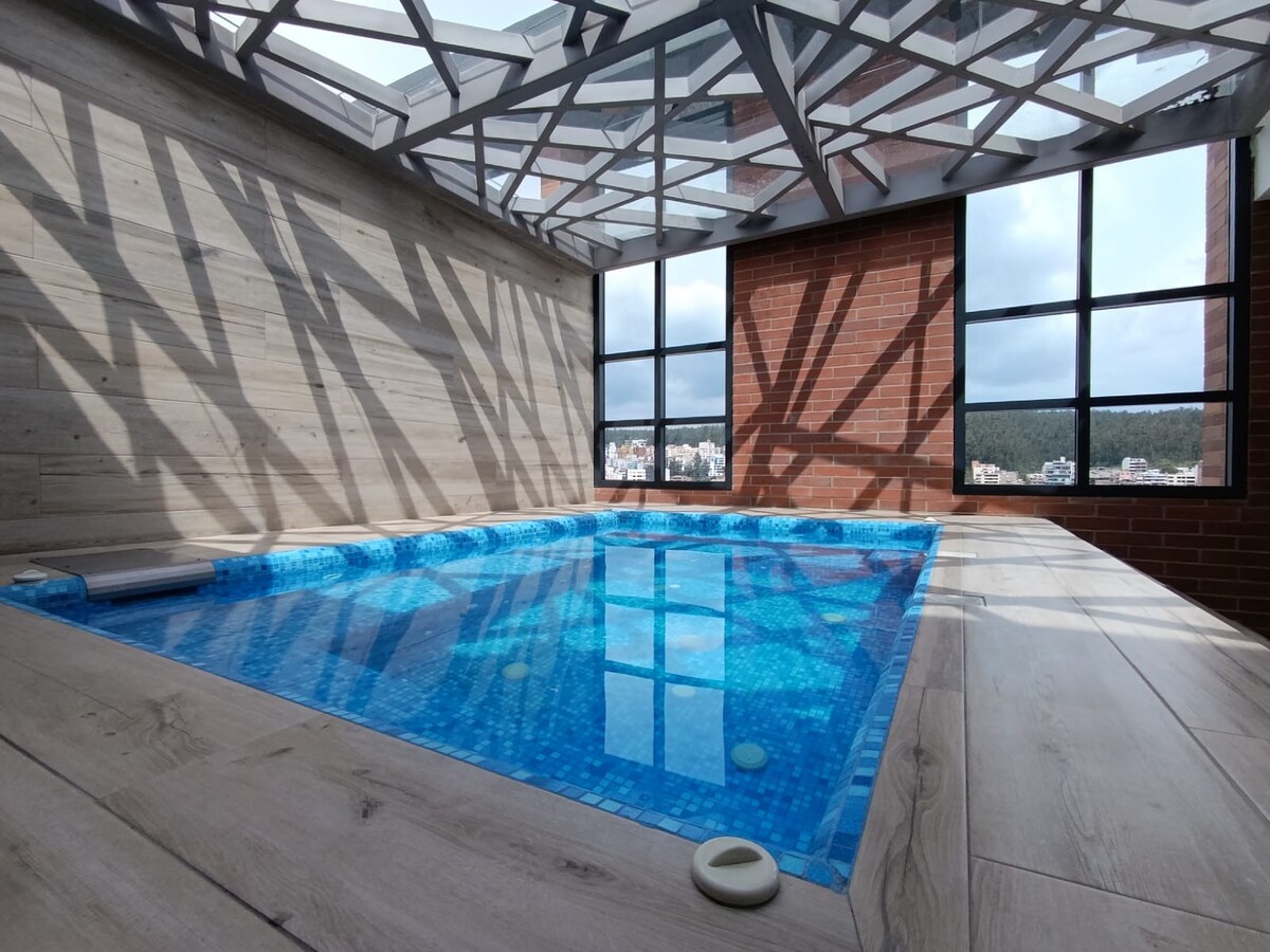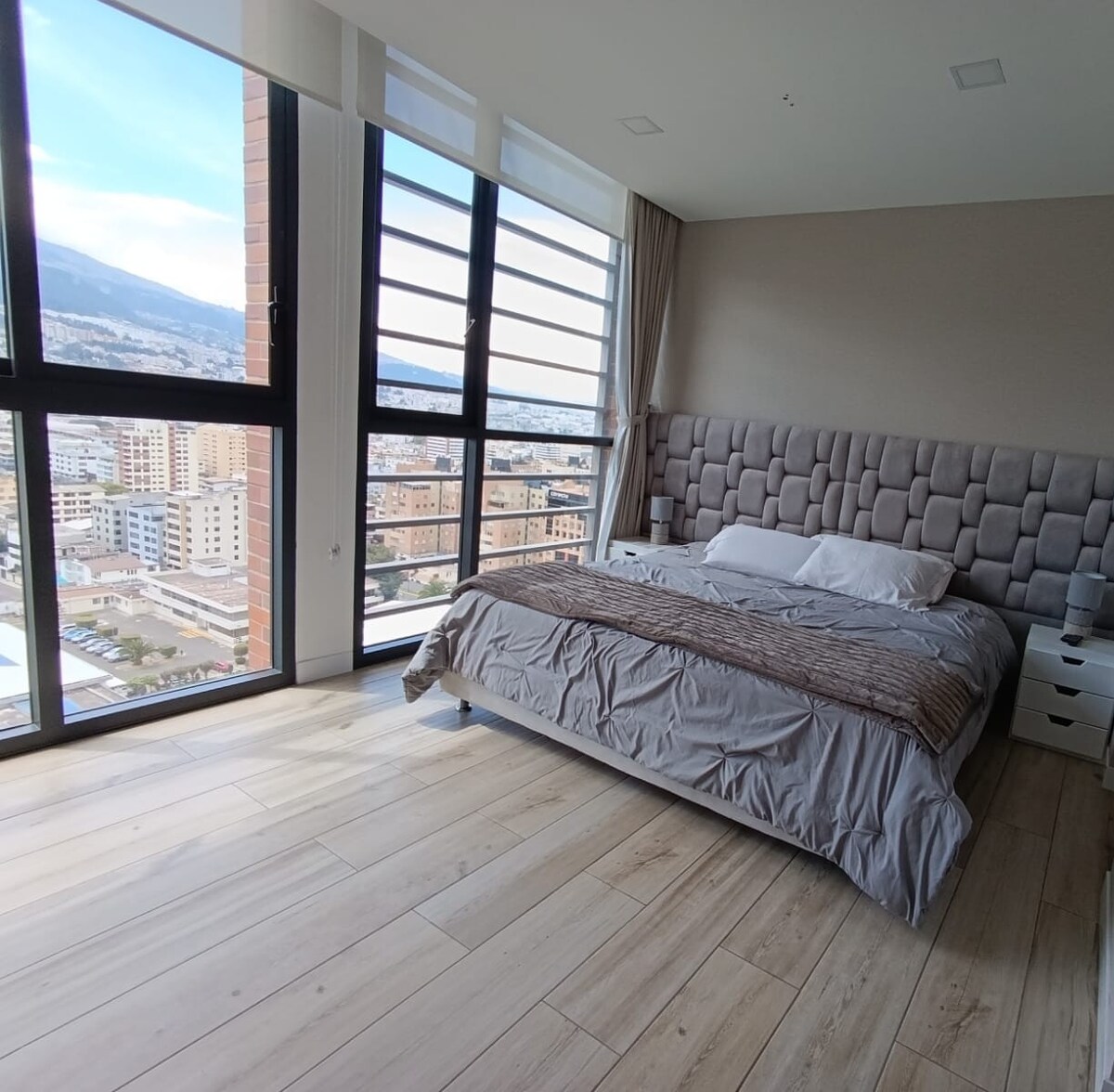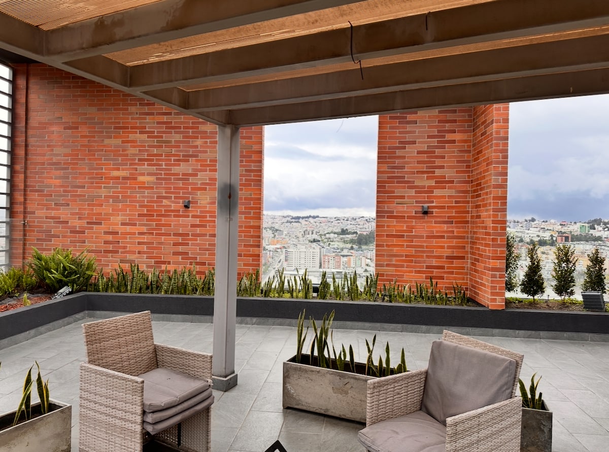 Modern, brand-new studio on the 14th floor with direct views of La Carolina Park. Studio amenities: • High-speed fiber optic WiFi • 55” QLED Smart TV • Ultra-comfortable bed • Fully equipped kitchen • Modern bathroom • Smart lock • 24/7 security Social areas (17th floor): • Gym • Coworking area with WiFi • Game room • BBQ area • Jacuzzi (available only for stays longer than two nights) Prime location, just 15 minutes from the Quito Metro, malls, and restaurants.