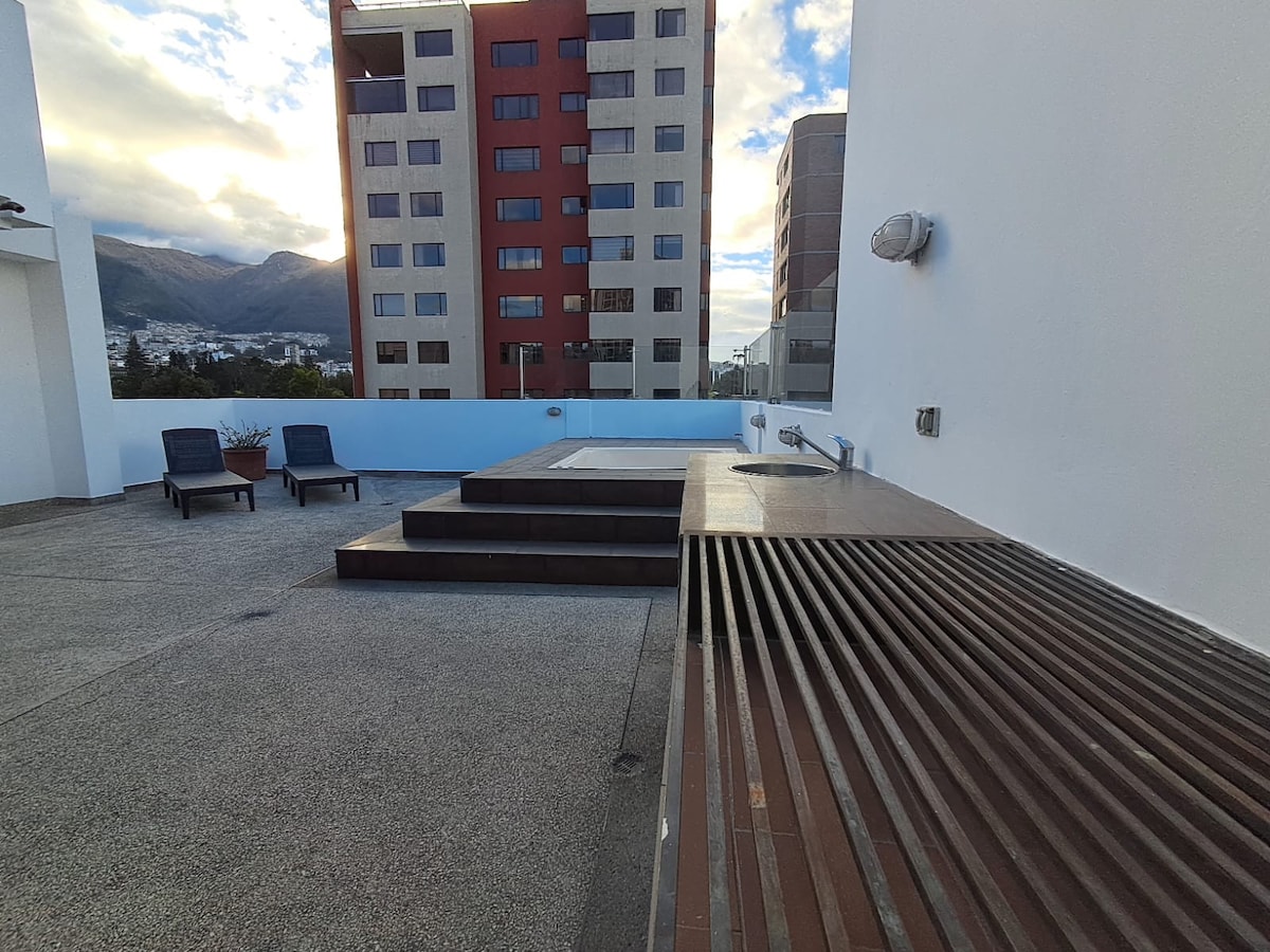 Alojamiento confortable, bien ubicado Sector la Carolina, con amenidades únicas para distracción y relax, a un minuto del parque la Carolina y CC Mall el Jardín y CCI. Cuenta con: ✓ Spa: Piscina - Sauna - Turco - Hidromasaje ✓ Gimnasio ✓ Cine ✓ Play Zone ✓ Balcón ✓ BBQ ✓ Salón de fiestas comunal ✓ Terra 360° Jardín terraza vista panorámica ✓ Cuarto de Lavado, Secado Plancha ✓ Seguridad 24 horas ✓ Parqueadero de pago 4/noche