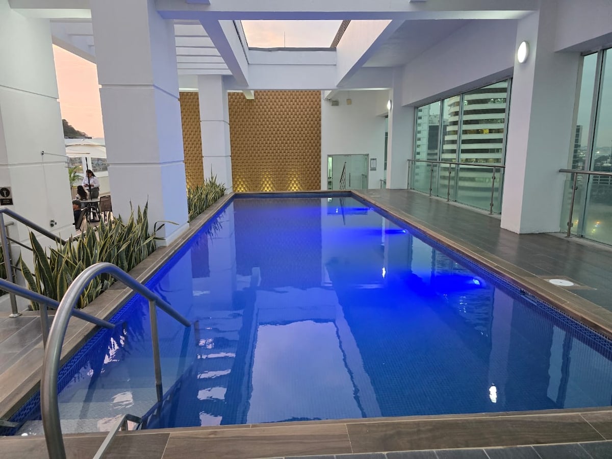 Njóttu glæsileika og þæginda í svítunni okkar á einkasvæði Puerto Santa Ana, umkringd frábærum veitingastöðum, kaffihúsum og útisvæðum í nokkurra skrefa fjarlægð. Auk þess hefur þú aðgang að félagssvæði okkar með sundlaug, gufubaði, heitum potti og líkamsrækt með tilkomumiklu útsýni yfir Guayas ána svo að þú getir slakað á og skemmt þér meðan á dvölinni stendur.