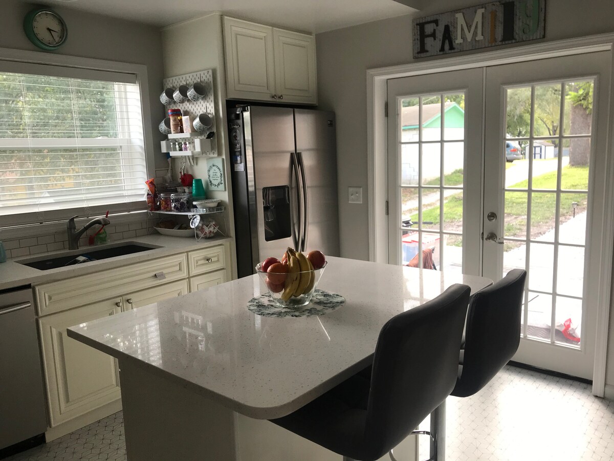 The Landing er innblásin af Amelia Earhart og er nýlega endurgerð með sérsniðnum húsgögnum sem gefa flug til frísins. Ertu að leita að gæðum og þægindum? Þetta heimili á einni hæð er með 3 svefnherbergi, 2 baðherbergi, fullbúið eldhús, þvottavél/þurrkara og stóran afgirtan garð með sveiflu, eldgryfju, grilli og leikjum. The Landing er með bílastæði við götuna og stóran 2ja bíla bílskúr. Auðvelt aðgengi að Benedictine háskólasvæðinu, miðbænum og nálægum hjólabrettagarði.