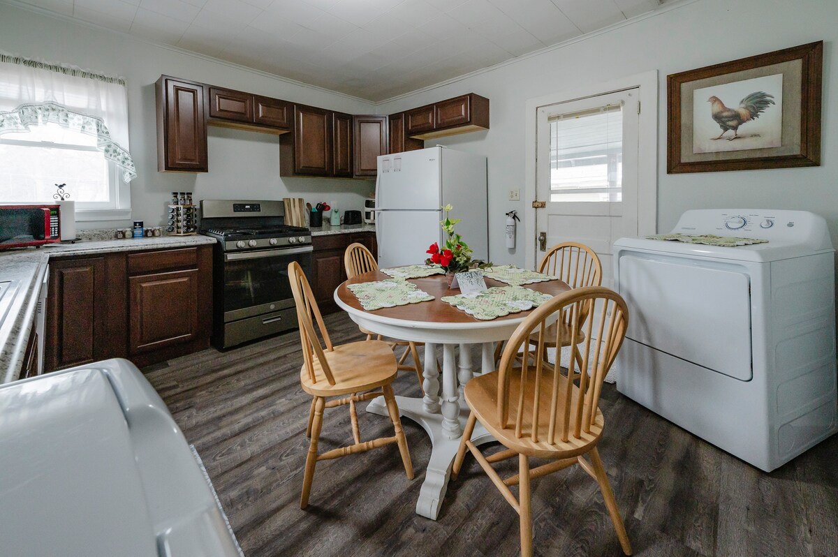 Velkomin heim í Atchison Belle! My 1860 Victorian has been 100% renovated for Guests to enjoy their Atchison visit in nostalgic style; all the modern comforts! Safnaðu fjölskyldunni saman í björtu eldhúsinu og slakaðu á í notalegu stofunni. Fáðu BC nemann þinn með í „Belle“. Stofan hefur verið breytt í notalegt þriðja svefnherbergi fyrir 2 (tveggja manna kojur) svo að fjögurra manna fjölskylda geti gist hér! Af hverju að borga fyrir tvö dýr hótelherbergi! Stelpu- eða parafrí-Honeymoon-Wedding