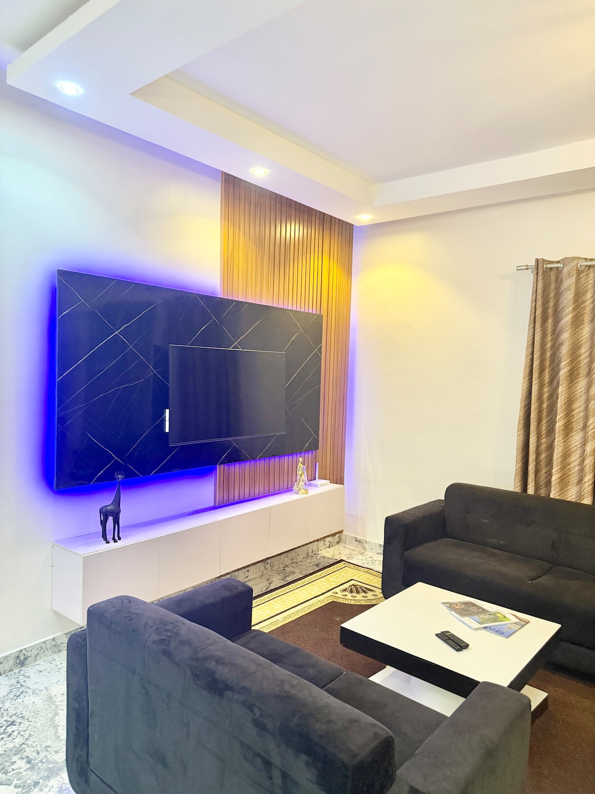 Fruit d'une passion ardente et d'un savoir-faire prouvé, Black Extaz est sans prétention aucune l'un des T2 les plus complets de Cotonou: 80 m2 en pleine ville, dans un immeuble moderne, aménagé avec goût et équipé à la démesure: Fibre optique, chauffe eau, lave linge, sèche-cheveux, machine à café, mini coffre, Netflix, bureau, Roof top… Tout a été concocté pour vous faire vivre une expérience unique. Black Extaz, c'est aussi des hôtes à l'écoute et plein de bonnes suggestions pour vous !