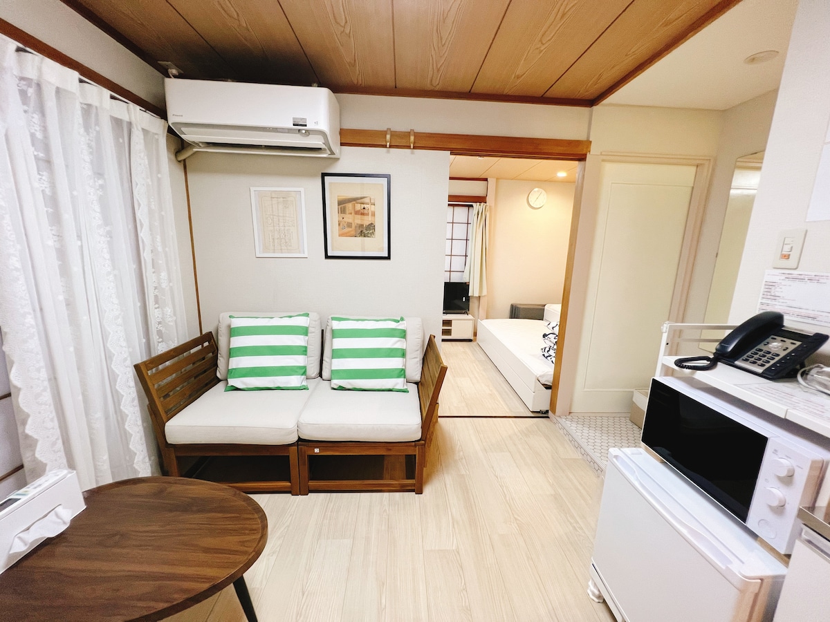 #繁華街に昭和の街並みや隠れ家など、静かな雰囲気を楽しみたい、癒されたい旅行客にはお勧めのお部屋です。(2DK部屋最大は6名宿泊が可能) ●最寄り駅:駒込駅(285米)地下鉄南北線とJR山手線があり交通に便利(スカイツリーが見えます!) ●観光地へ直通:渋谷、原宿、新宿、秋葉原、御徒町、上野、銀座(有楽町)、池袋、東京、国会議事堂、後樂園、東京大學、麻布十番、白金台、六本木など。 ●乗り換え一回:浅草、東京スカイツリー,お台場、東京ディズニーランド、新国立競技場など。 ●周辺の観光地: * 旧古河庭園 (バラの名所) 徒歩6分 * 六義園 (秋には紅葉、春には桜が楽しめる日本庭園)徒歩13分 * 池袋ショッピング 18分 * サンシャインシティ(水族館、展望台)28分 ●近くの商店街(徒步1分鐘):コンビニ,スーパー、ドラッグストア、レストランなどがあり、生活には便利です。 Check in : 午後16:00から Check out :午前10:00まで お部屋の紹介 #完全プライベート、2 つの部屋を区切る タイプ (プライバシーを大幅に保証)