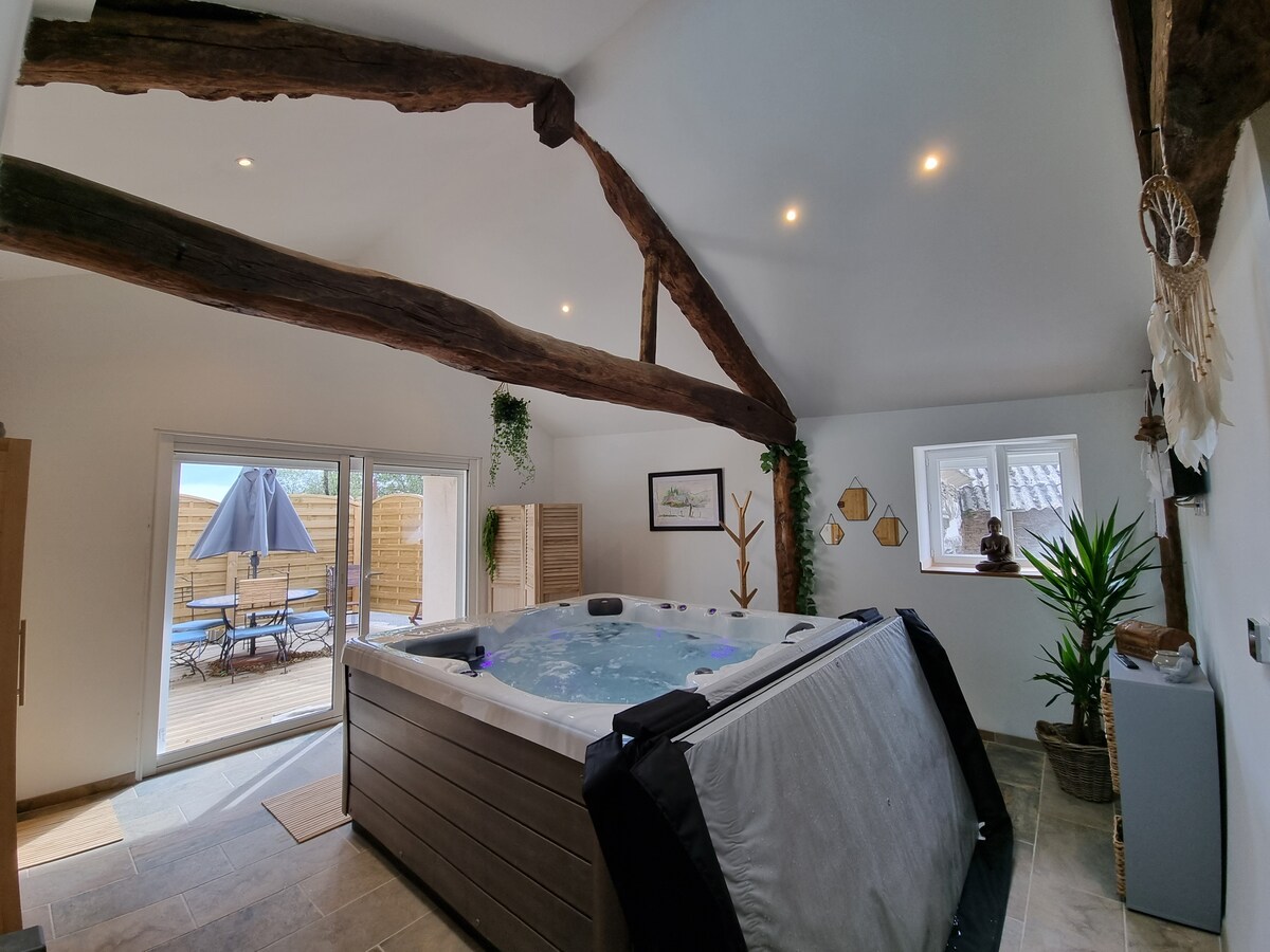 venez vous détendre dans ce logement calme et élégant. Petite maison neuve de 45m2 avec jaccuzy, sauna, cuisine équipée, lit king size 180cm .L'arrivée est en totale autonomie avec boîte a clé. Le petit déjeuné est compris. Parking privatif avec portail électrique sécurisé. Parfait pour une soirée en amoureux ❤️ ou un séjour tranquille..