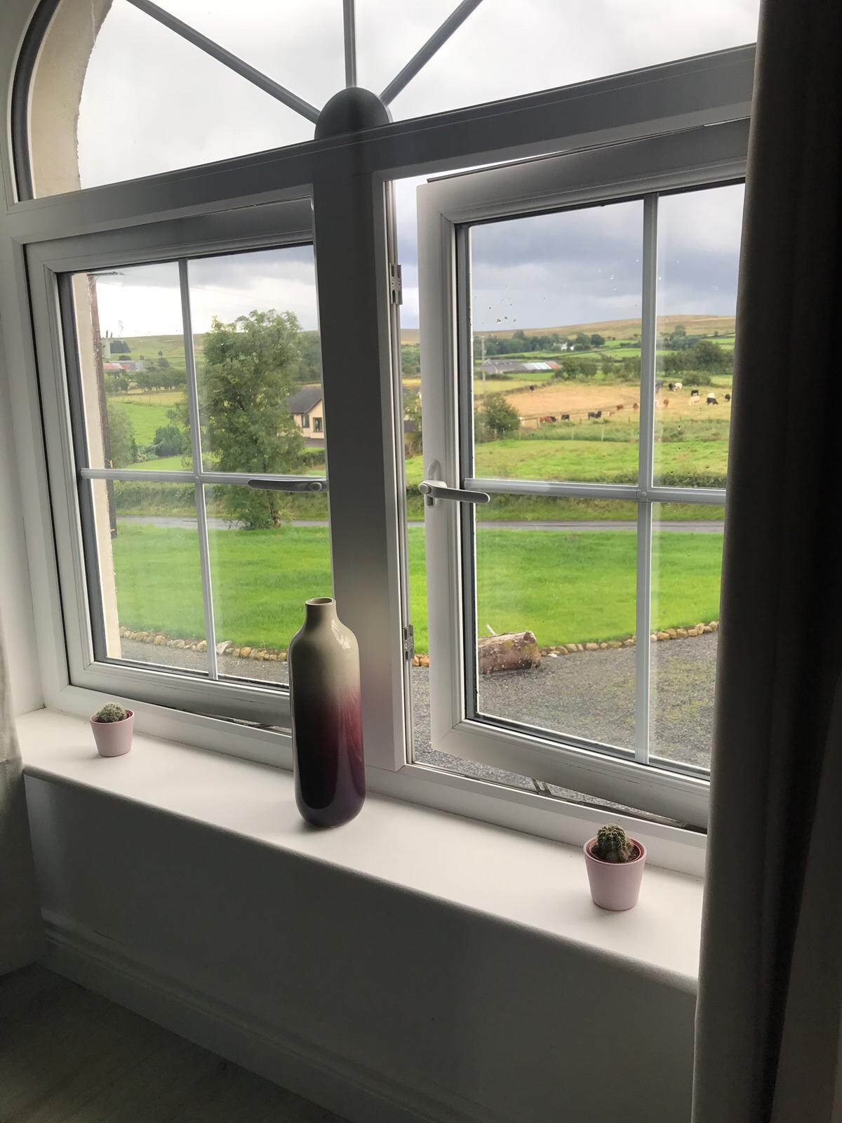 Yndislegur og nýenduruppgerður viðbygging við húsið okkar í fallegu og friðsælu umhverfi í sveitinni. Útsýnið suður er stórkostlegt. Eigin inngangur, eldhús og baðherbergi (sturta en ekkert bað). Frábær staðsetning til að sjá Belfast og norðurhluta N. Írlands, þar á meðal Glens of Antrim og Giant 's Causeway. Game of Thrones staðir eru ekki langt frá (við erum 45 mínútna akstur frá Dark Hedges). Á sumrin gæti Richard verið að fljúga loftbelgnum sínum!