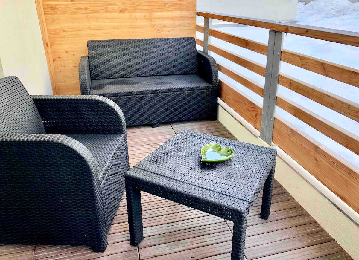Apartment with mezzanine, foot of the Le Seignus slopes for 4/6 people( ideal 4). Snýr suður til að njóta veröndarinnar. Beinn aðgangur að brekkunum niðri frá byggingunni, á skíðaskápastigi. Búið stórum ísskáp, ofni, uppþvottavél, örbylgjuofni, raclette-vél, katli, brauðrist, kaffivél (Nespresso). Við útvegum sængur og kodda. Mundu að koma með eigin rúmföt, handklæði og tehandklæði. Stórt bílastæði