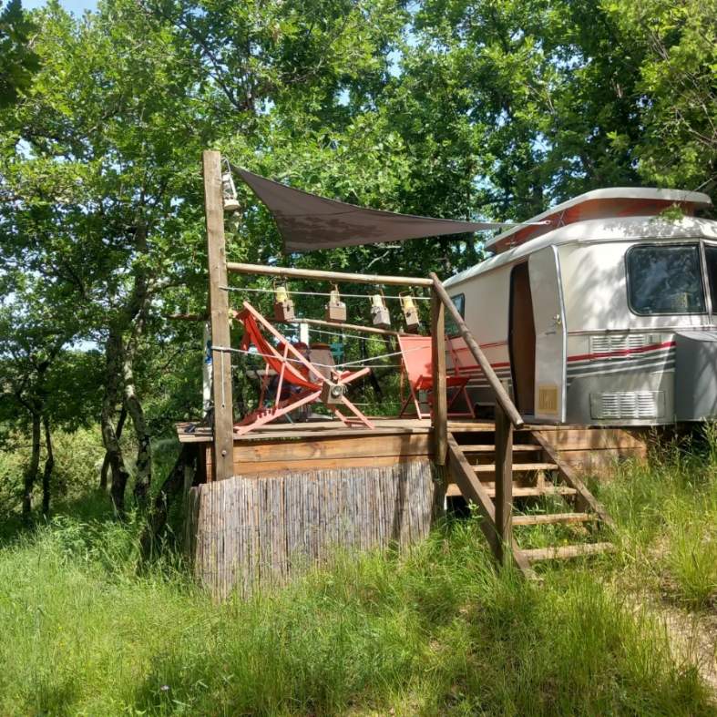 Verið velkomin í Roulot'Thines! Í suðurhluta Ardèche, í átt að Les Vans og Thines, komdu og hlaðaðu batteríin í heillandi umhverfi þessarar rómantísku og sveitalegu gistingu, umkringdri náttúrunni. Í hjólhýsinu er vinalegt og hlýtt herbergi og setusvæði og nokkra metra frá eldhússvæðinu og hreinlætisaðstöðu: með þurrsalerni og sturtu. Fyrir neðan sundlaugina. Heilsulindin er staðsett nálægt hjólhýsinu. Þú ferð þegar þú vilt. 0,30 evrur/dag, síðan 10 evrur/dag