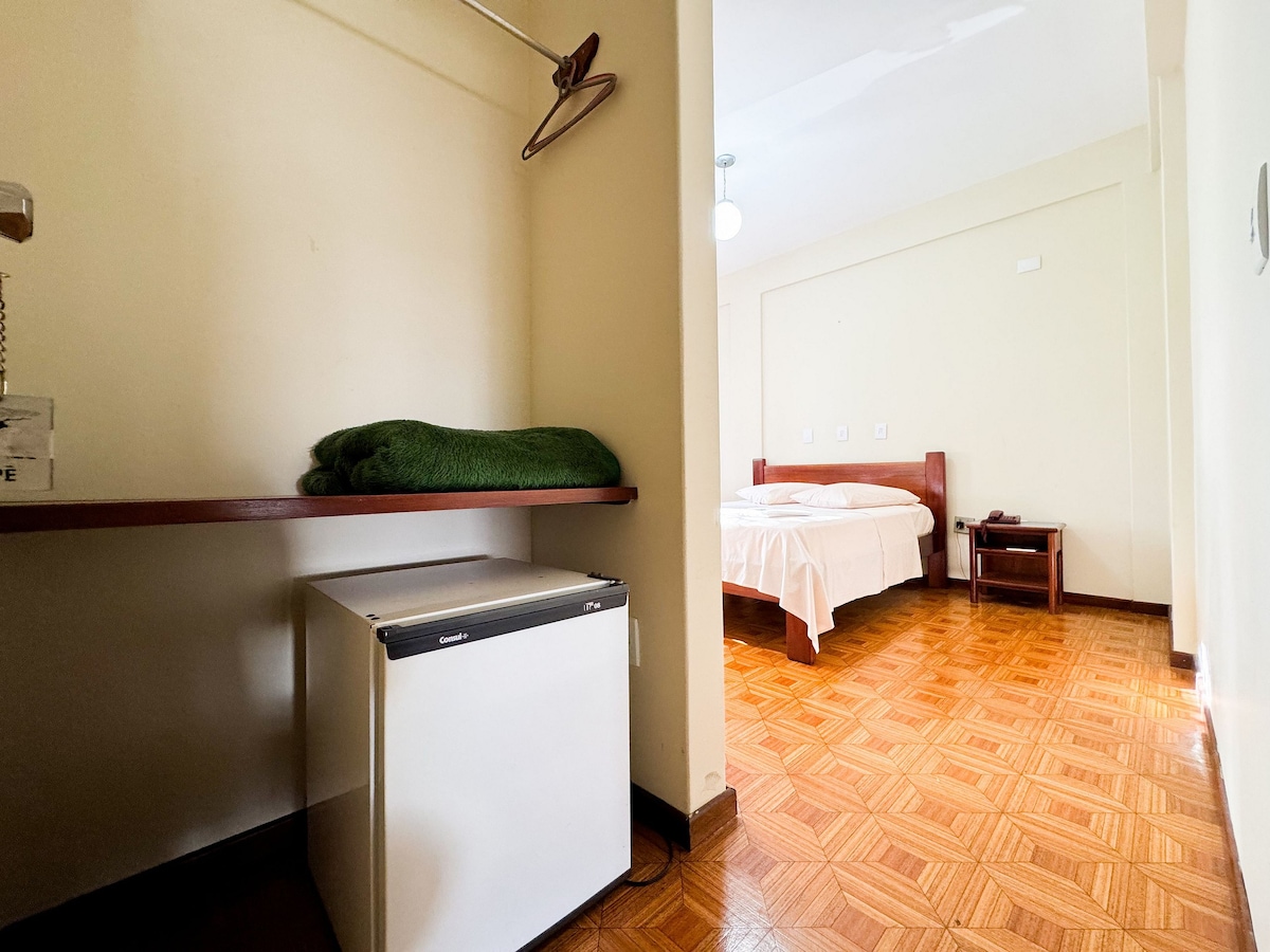 Íbúð með 1 svefnherbergi í hjarta Uberlândia. Staðsett í Saraiva hverfinu nálægt Universiade (UFU). Þessi sérstaki staður er nálægt öllu og er tilvalinn til að skipuleggja heimsóknina, frábær staðsetning fyrir fólk sem kemur vegna vinnu eða tómstunda. Ótrúleg gistiaðstaða í vel skipulögðu rými, vel skreytt, aðeins fyrir gesti, með öllu hagnýti og þægindum „að heiman“. Við útvegum rúmföt og baðföt. Íbúð með 1 svefnherbergi, jarðhæð, yfirbyggður bílskúr, nálægt háskóla, börum, veitingastöðum, matvöruverslunum O.S.FRV.