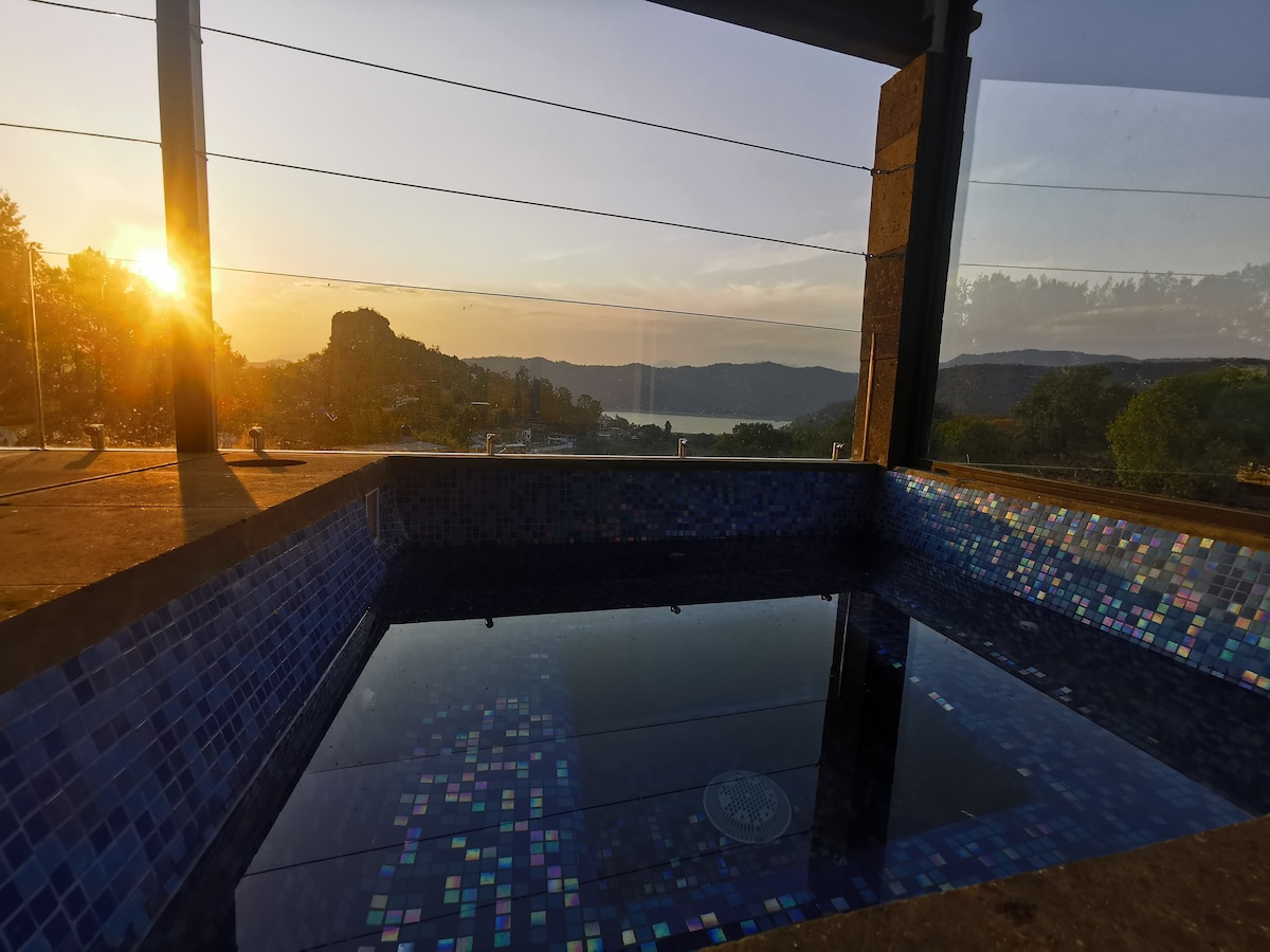 Njóttu tilkomumikils útsýnis frá einkaveröndinni með borðstofu sem virðist fljóta við vatnið! Þessi einkaíbúð innifelur: Svefnherbergi: Svíta með king-rúmi, svefnsófa og stóru fataherbergi. Fjölbreytt rými: Stofa með þægilegum svefnsófa, borðstofu og eldhúsi. Panoramic Terrace: Your outdoor dining room with the lake at your feet. Aðgangur að heillandi sundlaug með nuddpotti sem er sameiginlegur með tveimur öðrum íbúðum. Upplifðu töfra vatnsins í draumafdrepinu þínu.