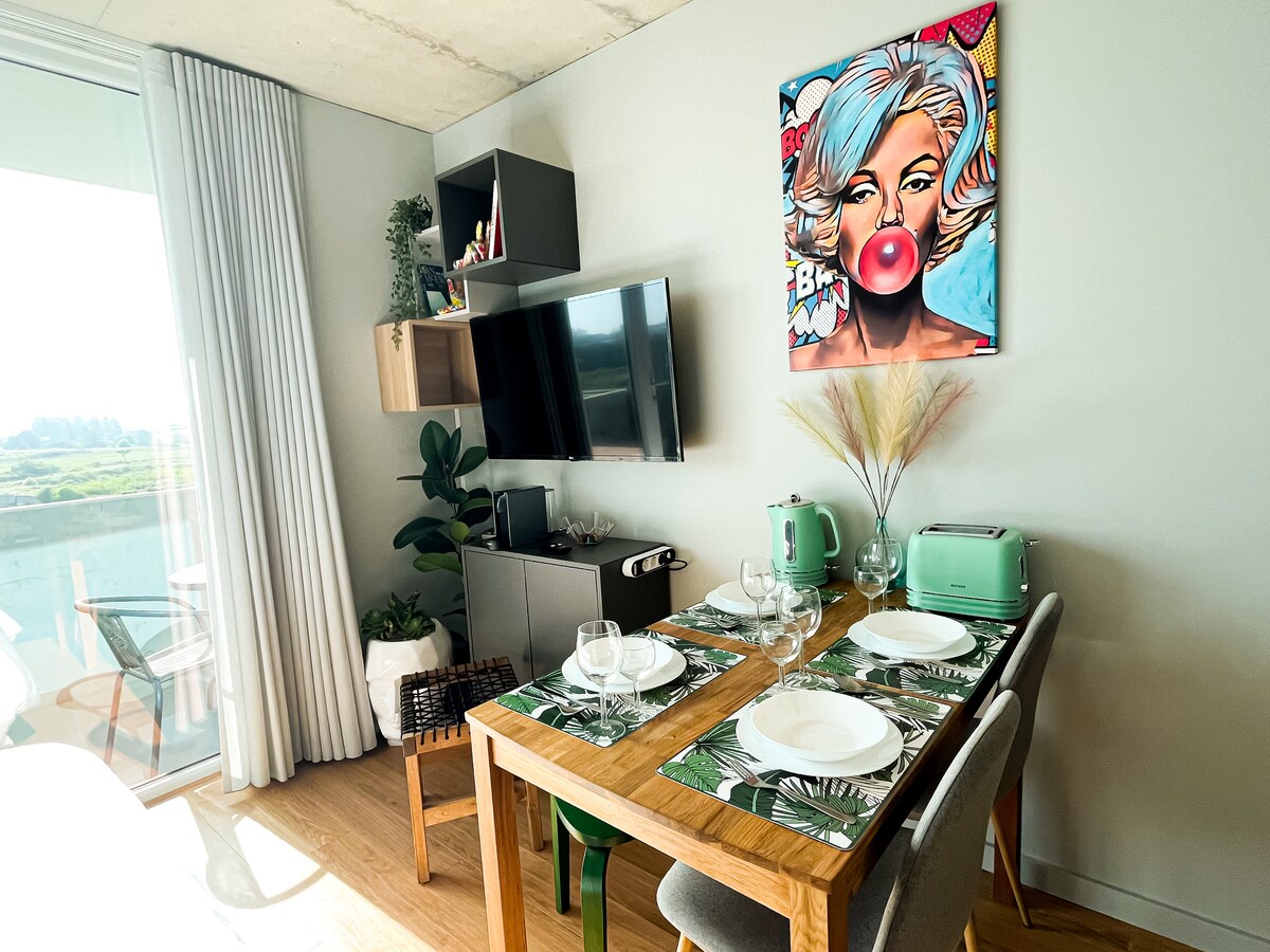 Þessi nútímalega íbúð í king-stærð er frábær valkostur fyrir par á ferðalagi. Hlýlegt umhverfið býður upp á einstaka gistingu nálægt miðborg Aveiro. Þessi íbúð er hluti af einstaklega hágæða og glænýrri byggingu nálægt lestarstöðinni, strætóstoppistöðvum, verslunarmiðstöð og ókeypis bílastæðasvæðum. Þú getur auðveldlega verslað matvörur, notað almenningssamgöngur eða lagt bílnum og komið hvaðan sem er til að njóta sem mest út úr borginni og öllu sem hún býður upp á.