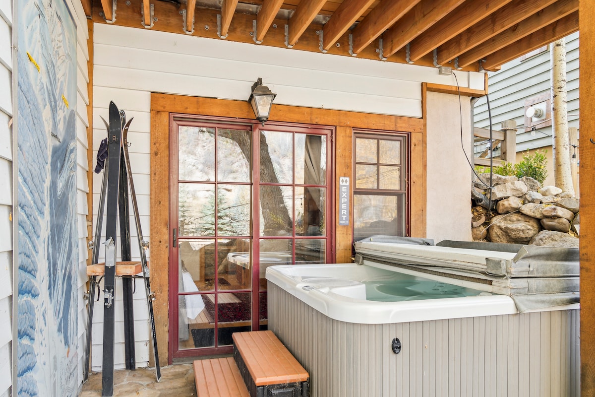 Hlustaðu á iðandi ána frá einkaheitapottinum að fjallabakgrunni en djúpi potturinn á aðalbaðherberginu er jafn kærkomin sjón. Sælkeraeldhúsið er með víkingaeldavél en viðarinnréttingin innifelur 2 gaseldstæði. Ný lúxus king-dýna og rúm í aðalsvefnherberginu! Þessi eign var áður „Herbergi við ána“ þegar hún var hluti af Minturn Inn við Aðalstræti. Nú er þessi eftirsótta staður allt fyrir þig. Þetta er fullkominn staður til að slaka á eftir erfiðan fjallgöngu. Íbúðin samanstendur af frábæra herberginu og hjónaherbergissvítunni. Hjónaherbergið er með king-size rúmi, einkaeldstæði, en-suite baðherbergi með nuddbaðkari, glersturtu og heitum potti rétt fyrir utan svefnherbergisdyrnar. Í aðalherberginu er queen-rúm með næði og beint aðgengi að aðalbaðherberginu og sturtunni. Í aðalherberginu er einnig fullbúið sælkeraeldhús, morgunarverðarbar, kringlótt borð með 6 sætum, 50" sjónvarpi með kapalsjónvarpi og svefnsófa. Íbúðin opnast beint út í garðinn rétt við ána. Öll íbúðin er sérinngangur með sérinngangi. Garðinum er deilt með okkur en við notum hann sjaldan þar sem börnin okkar vilja helst vera á framhlið hússins þar sem þau geta hjólað! Konan mín og ég verðum oft í fluguveiði í bakgarðinum okkar á sumarkvöldum. Okkur er ánægja að deila eigninni og segja þér hvað er að bíta! Því miður erum við ekki aðgengileg hjólastólum. Eða jafnvel aðgengilegt á háhjóli. Stígvélum er mælt með því að ganga í gegnum skóflustíginn sem leiðir þig að innganginum við ána. Það er reipi handrið til að leiðbeina þér en þú verður að vera viss-fætur. Fjögurra manna fjölskylda okkar býr í algjörlega aðskildum efri hæðinni. Ég er vanalega til taks fyrir allt sem kemur upp á en vil ekki hindra þig í afslappandi fríi við ána. Minturn er lítill skíðabær í burtu frá ys og þys Vail og Beaver Creek. Röltu á nokkra veitingastaði, víngerð, skemmtilegar gjafavöruverslanir, plötubúð og kannski bestu fluguverslunina í fjöllunum. Skíði, fleki og fjallahjól eru í aðeins nokkurra mínútna fjarlægð. Ókeypis bílastæði eru í innkeyrslunni. Það er strætó hættir í 3 mínútna göngufjarlægð sem mun taka þig til Vail fyrir $ 4. Ubers og leigubílar eru einnig í boði. Heimili okkar og eign er reyklaus. Engin gæludýr takk. Pack n' Play með teygjulak í einingu. Straubretti/straujárn, vifta, aukateppi, nestiskarfa/bakpoki, hárþurrka á hverju baðherbergi.
