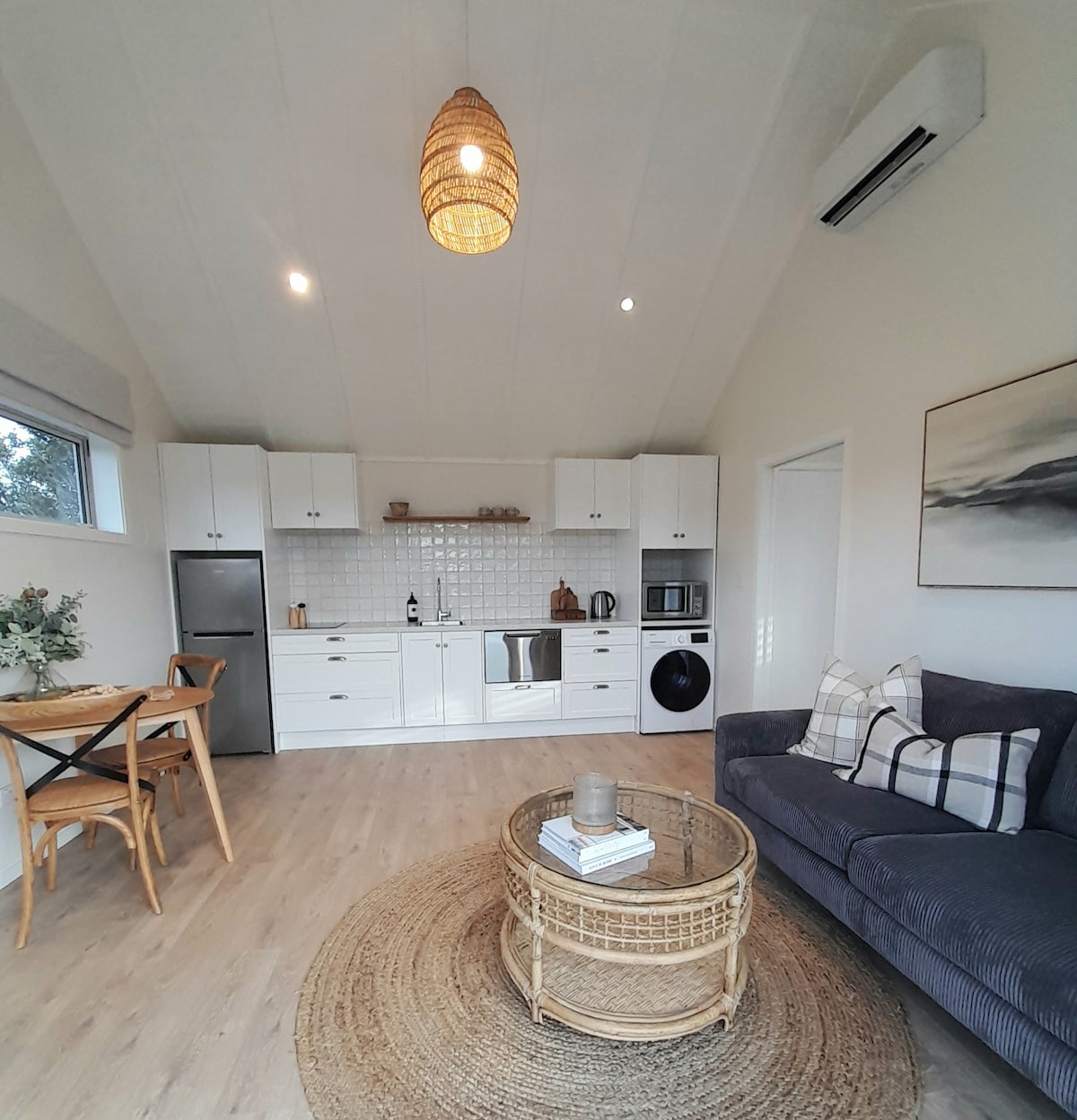 Modern one bdrm, King Bed cottage in gold-mining Stafford. 10 mínútna akstursfjarlægð frá Hokitika, kaffihúsum og verslunum á landsbyggðinni. King-size rúm og king single í einu rúmgóðu svefnherbergi, þar er aðskilin setustofa/matsölustaður/eldhús. High-Pressure Gas Shower. Á bílaplaninu er þvottavél og þurrkari með fataslá í nágrenninu. Hratt Starlink Internet. Snjallsjónvarpsforrit og Sky. Cell coverage is 1-2 bars, but activate wifi-calling on your cellphones for clear calls. Innritun kl. 14-21 (ekki síðar)
