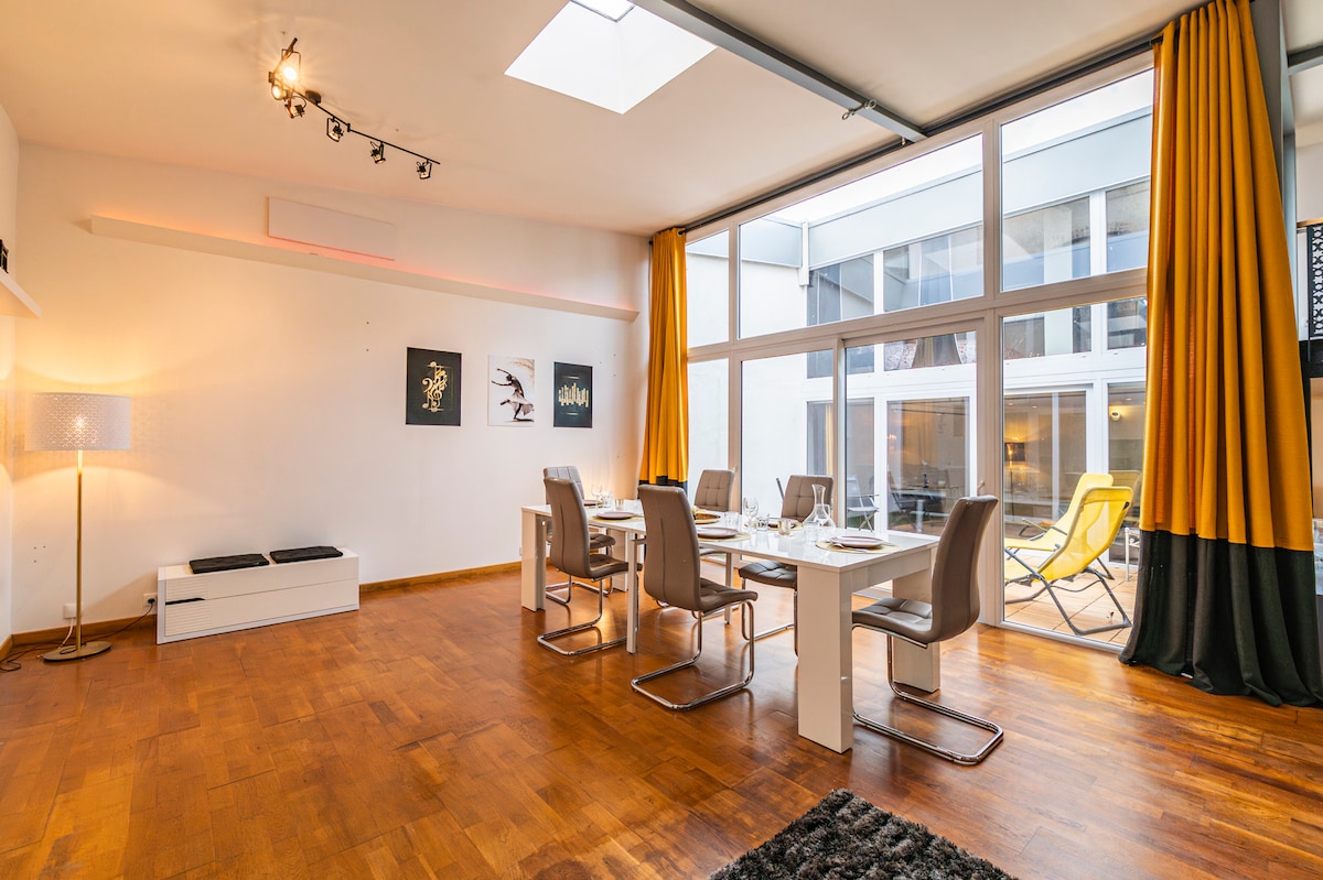 🚩 Verið velkomin í Loftíbúðina! 🎁 Ókeypis kampavínsflaska sem kynningargjöf 🥂🍾 🏠↔️Mjög rúmgóð, 150m2 loftíbúð 💤 Kyrrð og næði og þægilegt Rúm í 🤴 king-stærð 👸 Queen-rúm 🛋️ Breytanlegur sófi 🧖♀️🫧 Baðker á baðherberginu til að slaka á í 4K 📽️🛋️ skjávarpi í stofunni, eins og í kvikmyndahúsi 🅿️🚘 Ókeypis, einkabílastæði á staðnum. Breidd: 2m25. Lengd 4m90. Hæð: 2m00 🎅 Jólamarkaðurinn í desember er í 15 mínútna göngufjarlægð