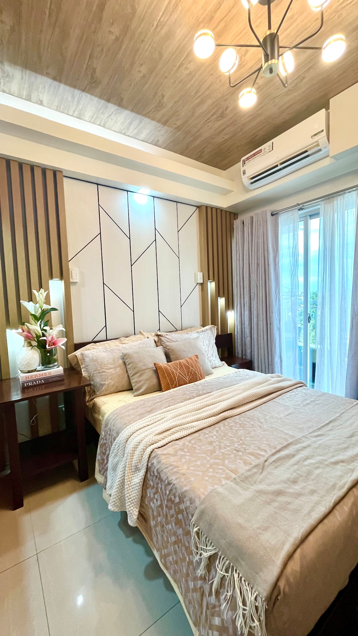 Upplifðu nútímaleg þægindi og glæsileika í þessari glæsilegu háhýsi í Aeon Towers, virtasta heimilisfangi Davao. Þessi eining er fullkomin fyrir viðskiptaferðamenn, pör og gesti í frístundum og býður upp á magnað útsýni yfir borgina og fjöllin. Það sem þú munt elska: ✔ Rúmgóð og fullbúin eins svefnherbergis íbúð ✔ Gluggar frá gólfi til lofts fyrir dagsbirtu og töfrandi borgarmynd ✔ HRATT þráðlaust net og snjallsjónvarp fyrir vinnu og afþreyingu ✔ Svalir til að njóta sólsetursins eða borgarljósanna ✔ Aðgangur að þægindum