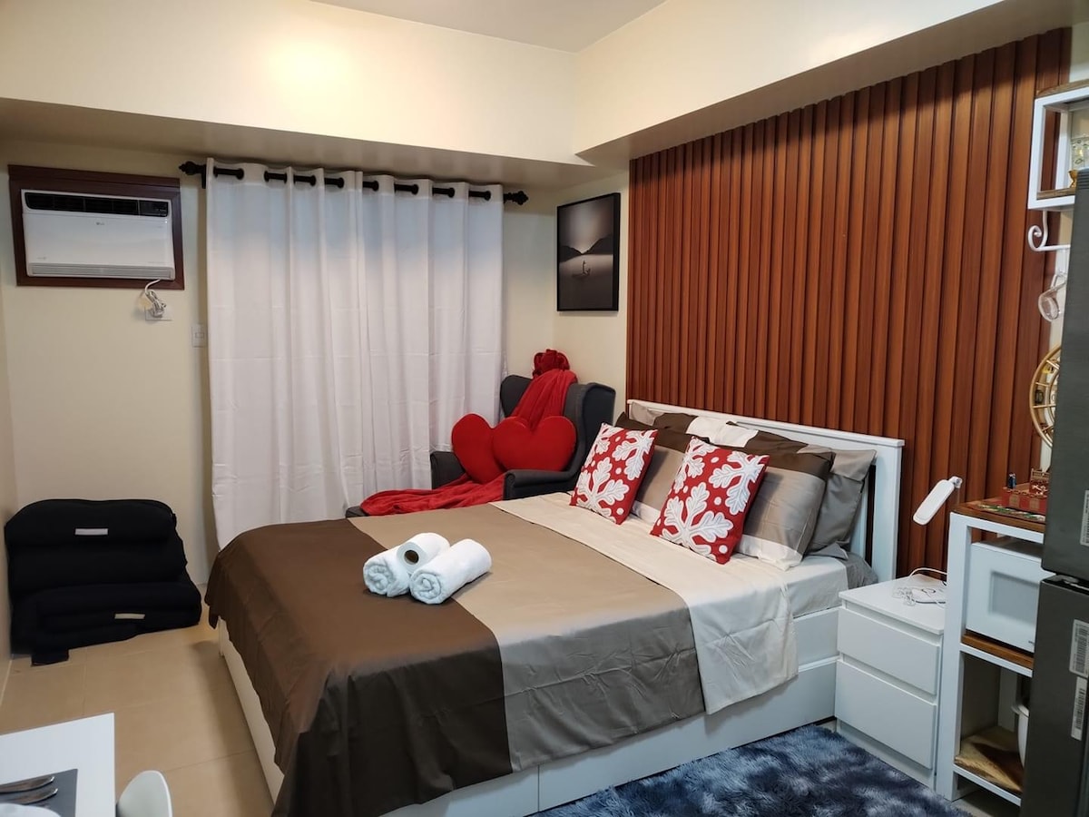 Tengstu aftur ástvinum á þessum fjölskylduvæna stað. Garðsvæði 🌻með svölum🌺 👉Göngufæri við Ayala Serin & Fora Mall 👉Our Lady of Lourdes Church Rúm ✅ af queen-stærð ✅ Sófi ✅ 2 samanbrjótanlegt einbreitt rúm ✅ 55" LED-sjónvarp ✅ Wifi-Globe Fiber ✅ Netflix, Prime Video, HBO Go, ✅ Lítill körfuboltavöllur ✅ Matarsett ✅ Rafmagnsketill ✅ Rafmagnsofn ✅ Rice Cooker ✅ Ref ✅ Ókeypis hreinsað vatn ✅ Hitari ✅ Baðhandklæði ✅ Hárþurrka ✅P350 með afslætti P300 ✅ Aðgangur að líkamsrækt, leikherbergi og útsýnispalli (Taal View)
