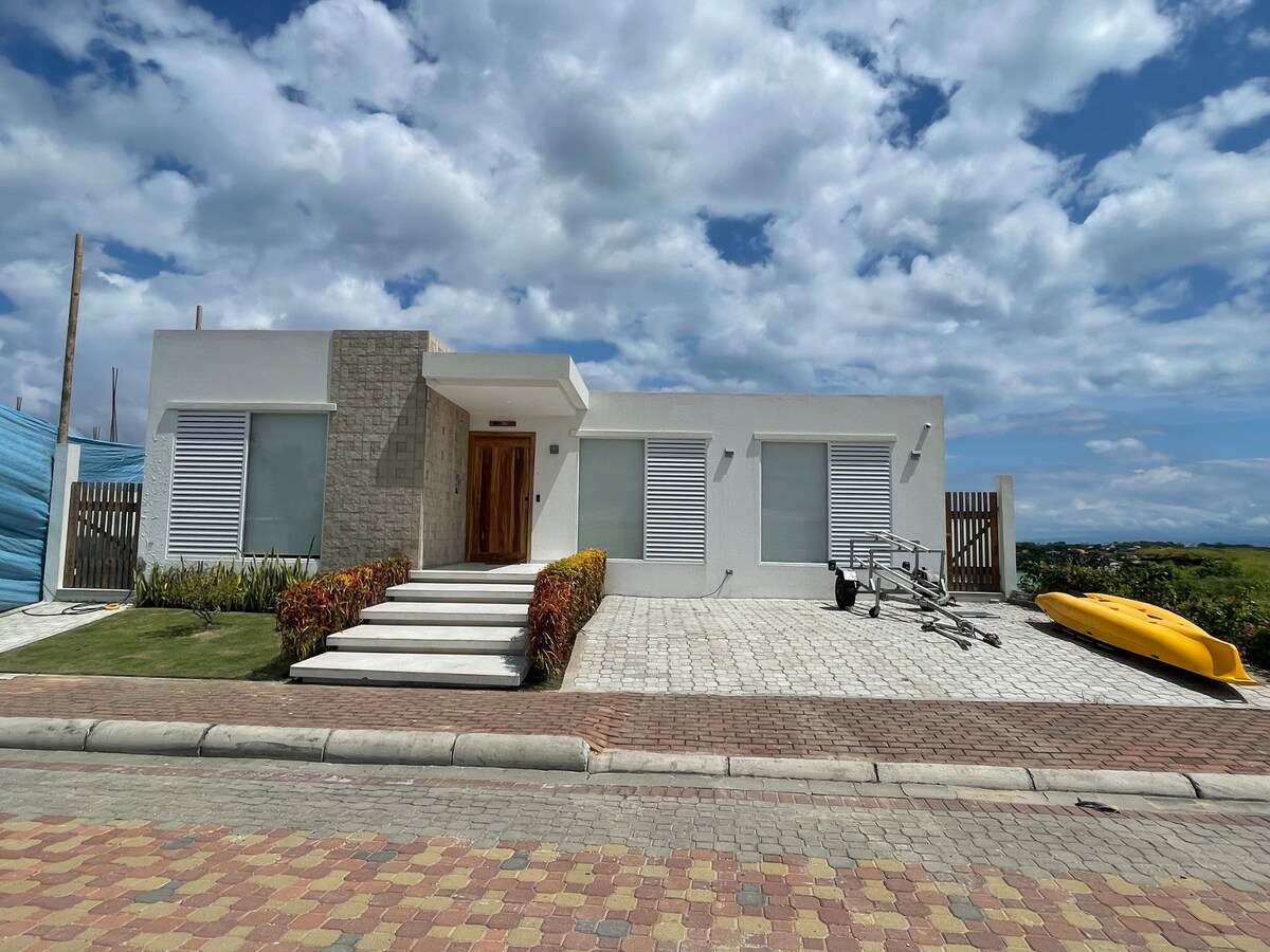Ef þú ert að leita að hreinu húsi og persónulegri athygli með einkasundlaug sem býður þér besta útsýnið til að vera á veröndinni og að þú sért alltaf studd með ráðleggingum frá gestgjafanum þínum, þá erum við besti kosturinn þinn. Í þessari samstæðu verður þú að hafa bílskúr öryggi fyrir að vera inni í hlöðnu borg, einkaströnd aðeins eina mínútu frá húsinu án þess að yfirgefa þéttbýlismyndun, frið og ró Ayangue.
