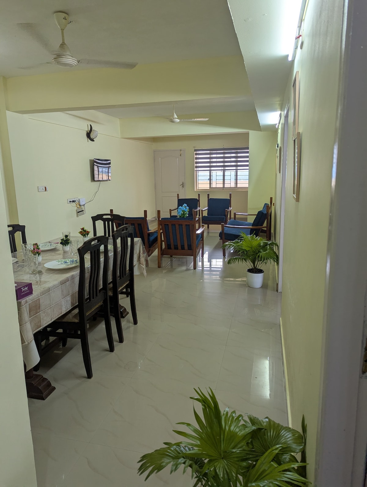 Rúmgóð íbúð, staðsett 5 km frá miðbænum og við hliðina á National Highway (Kannur-Mangalore). Íbúðin er með 2,5 svefnherbergi, 2 baðherbergi, stofu og borðstofu, eldhús með ísskáp, katli , nauðsynlegum áhöldum og hitaplötu og samtals 4 rúmum. Aðeins eitt svefnherbergi er með loftkælingu og hin eru með loftviftur. Staðsett á 3. hæð með lyftuaðgengi og nægum bílastæðum. Veitingastaðir í nágrenninu eru þægilegur valkostur fyrir dvöl þína.