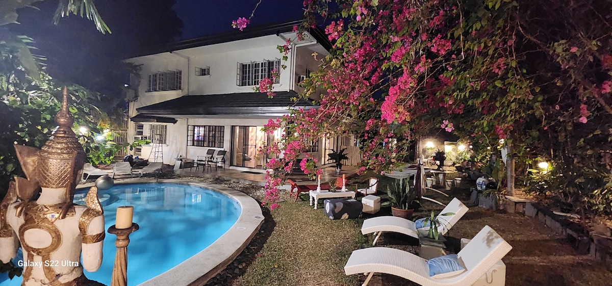 Spacious and cozy 3BR home (sleeps 10, max 12) with aircon, blackout curtains, comfy beds & Smart TVs with Netflix/Prime. Open living area with 75” TV, karaoke & kitchen for shared meals. Pool house features bar, BBQ, dining & pool, plus a serene garden lounge. Towels, toiletries, drinking water & 3 parking spaces provided. ₱800 cleaning fee applies (not included in nightly rate). Kindly switch off lights & AC when not in use. Thank you very much. We look forward to hosting you! 🫶