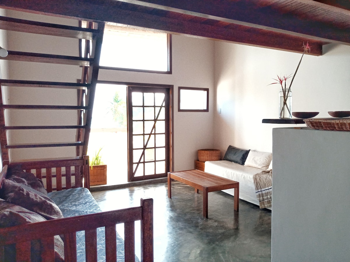 Nútímalegt og rúmgott ris með fullbúnu eldhúsi og stórum svölum í rólegri og öruggri íbúð við sjóinn. Ótrúleg upplifun fyrir framan Bahia de Todos os Santos þar sem þú getur notið sólarupprásarinnar með borgina Salvador í bakgrunninum. Með rólegri strönd og greiðum aðgangi að miðborginni, þar sem eru nokkrir tómstundir, apótek og bankar, verður þessi staður einstakur staður fyrir fríið eða til að njóta langrar vinnu í fjarvinnu.