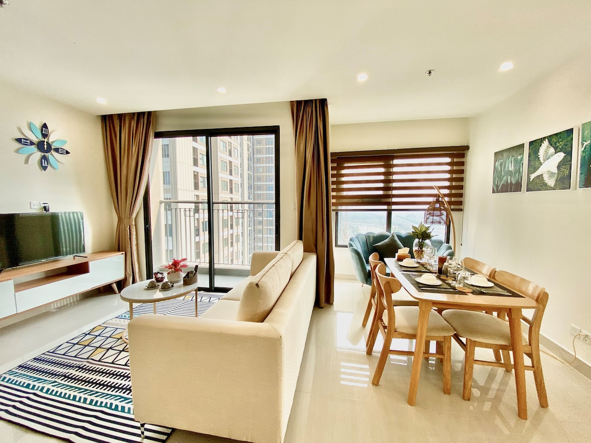Þægilegt frí - Sér og ókeypis þvottavél/þurrkari fylgir! Þessi glæsilega 1BR-íbúð í The Zenpark Tower- VinHomes OceanPark. Þetta er glæný bygging sem er hönnuð fyrir nútímalegt og opið. ✓ Hágæða sófar og dýnur fyrir ánægjulega dvöl. Slepptu ódýrum óþægindum í leigu. ✓ Vinna og endurhlaða: Sérstök vinnuaðstaða, þvottavél og fullbúið eldhús.