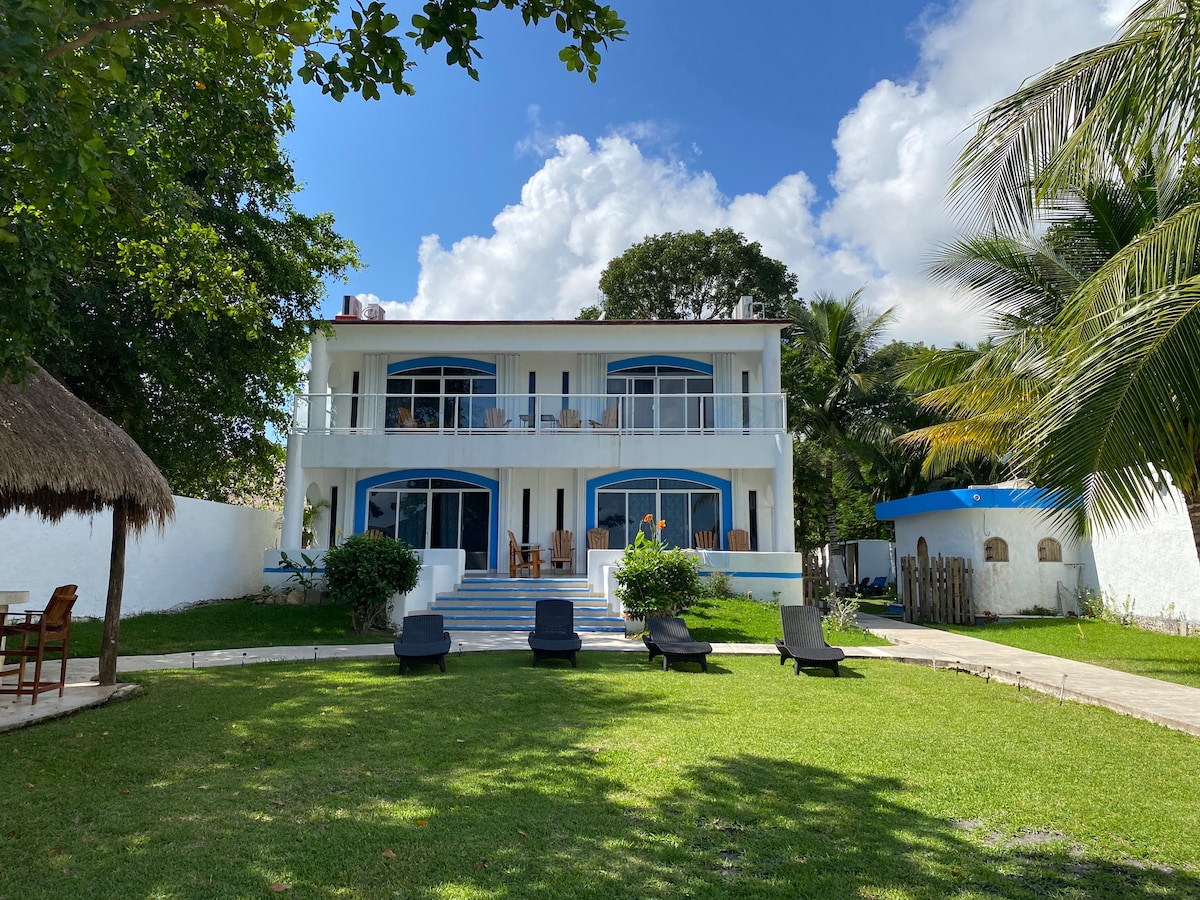 Fallegt hús við ströndina í aðeins 3 km fjarlægð frá bænum Bacalar. Með 4 svefnherbergjum, tveimur inni í húsinu og tveimur sjálfstæðum bústöðum aftast; samþættingu og næði. Allt með baðherbergi og/a/a. Einkabílastæði, rampur og bryggja. Sundlaugin með útsýni yfir lónið er staðsett í þeirri hlið veröndarinnar sem gerir þér kleift að hvílast og búa með fjölskyldu og vinum án þess að fara úr vatninu. Fullbúið til að gera dvöl þína ógleymanlega.