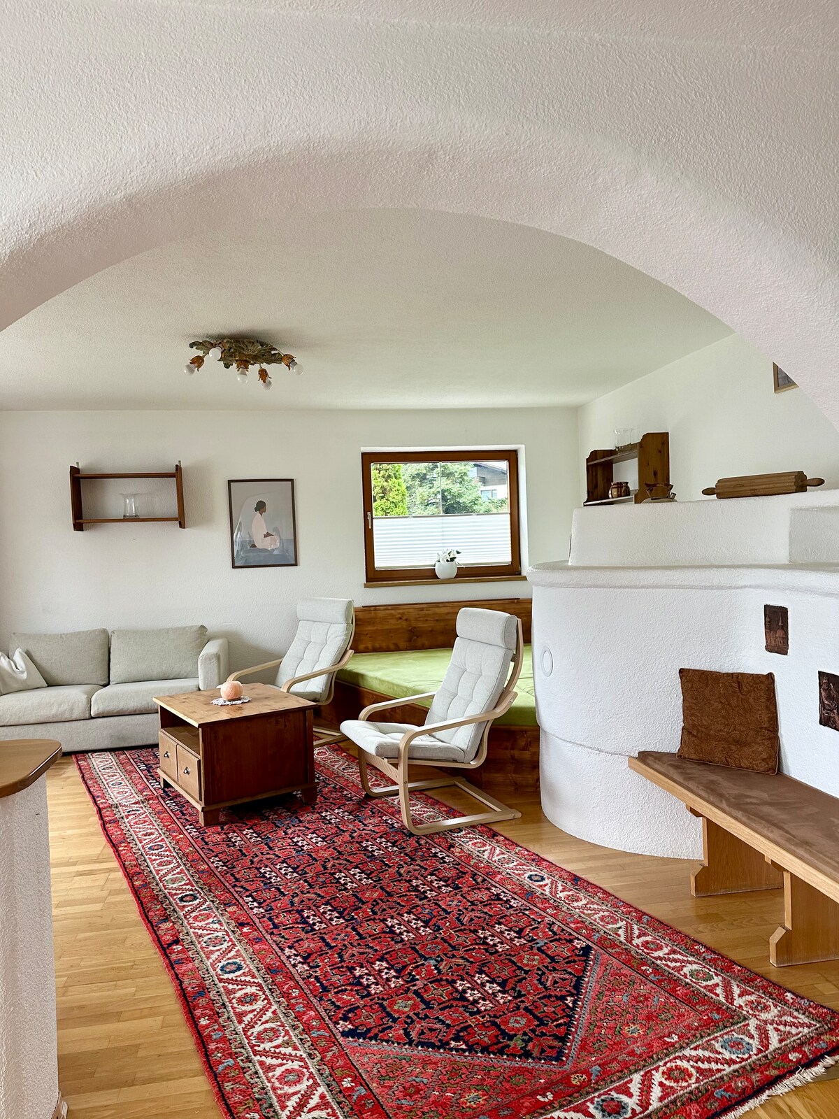 Genießen Sie schöne Tage im Kaiserhaus mit Garten & wunderbarem Blick auf die Berge. Ein 200 Jahre altes Holzhaus wurde hier in der Nähe abgetragen und neben meinen Haus wieder aufgebaut. Das neue (alte) Holzhaus wurde sehr ökologisch und auf neuestem Stand wieder hergerichtet. Dieses Studio wurde fast nur mit altem & neuem Holz ausgekleidet - man sieht noch die alte Handwerkskunst. Dennoch ist auch das Moderne wie Beamer, Alexa Sprachsteuerung eingebaut. Parkplätze stehen zur Verfügung.
